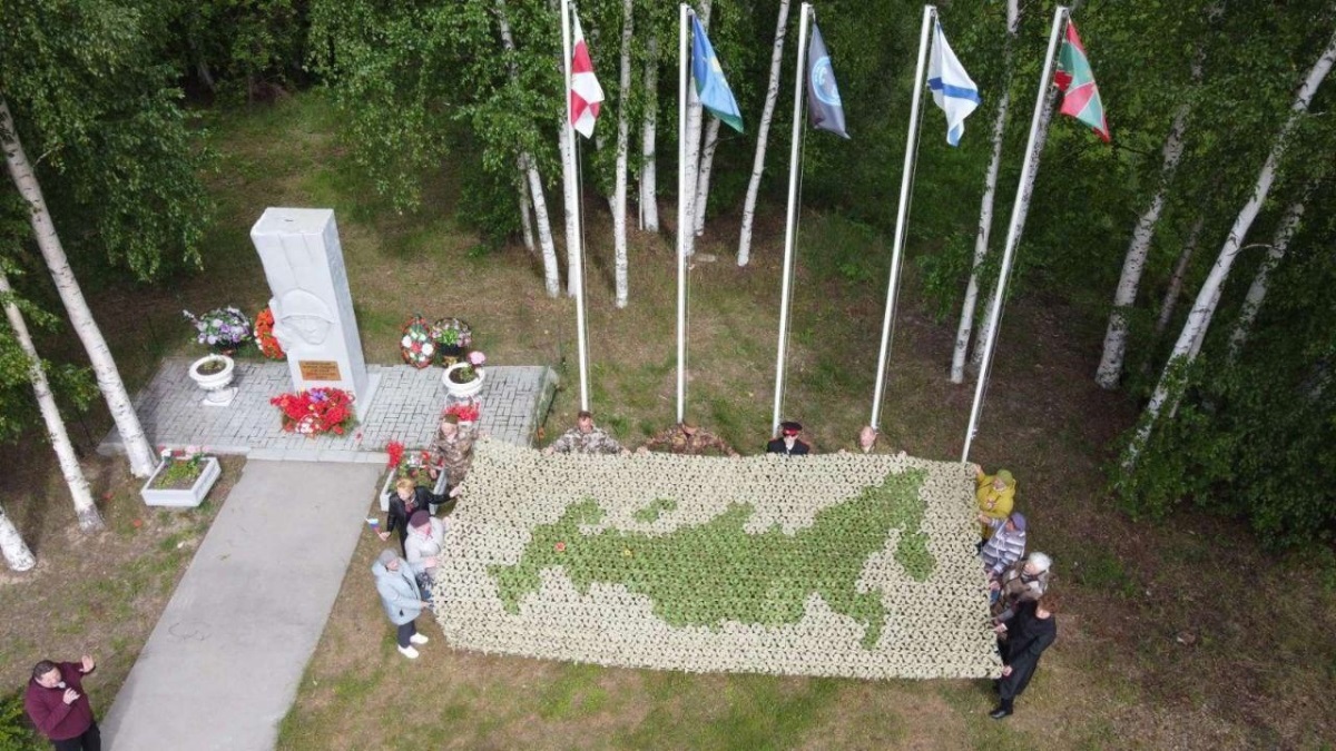 А в Андре добровольцы волонтерского штаба "Надежный тыл" и ветераны Российской Армии провели патриотическую акцию #МыВместе. Участники минутой молчания почтили память всех погибших российских воинов, которые пали, защищая суверенитет своей страны, а затем презентовали оригинальную маскировочную сеть, изготовленную андринскими волонтёрами специально ко Дню России. На маскировочной сети руками добровольцев сплетена карта Российской Федерации.
