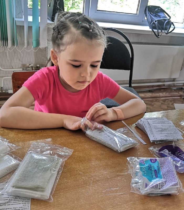 Сегодня волонтеры отправили 7000 комплектов сухого душа, гуманитарную помощь в полевые госпиталя, детский реабилитационный центр в п. Кременная (ЛНР), осваивают плетение маскировочных сетей.