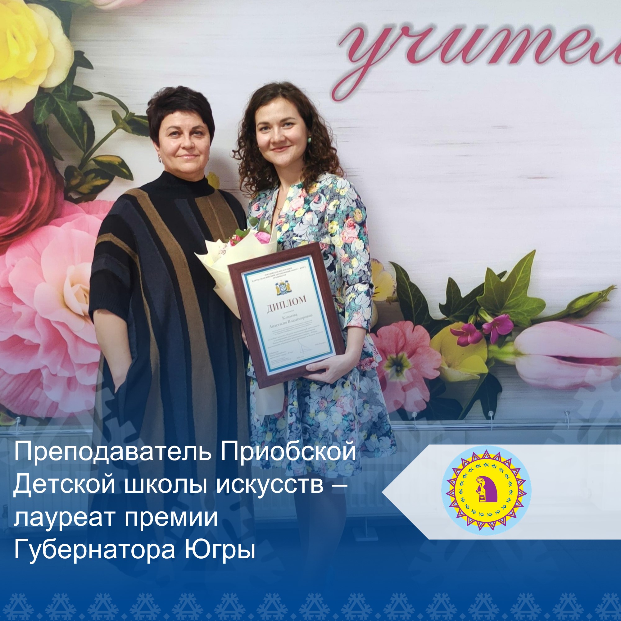 Премию Губернатора Югры за выдающиеся достижения в педагогике получили преподаватели из различных учебных заведений региона, специализирующиеся в области искусства и культуры. Среди награждённых - Анастасия Владимировна Климова, преподаватель Детской школы искусств поселка Приобье.