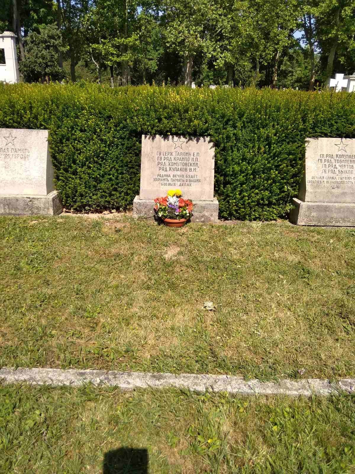 Штурм Вены одна из тяжёлых наступательных операций, которая завершала Великую Отечественную войну. Операция продолжалась с 5 по 13 апреля 1945 года. Бои за Вену были ожесточёнными. Только в ночь на 14 апреля город был освобожден. Тогда же 14 апреля 1945 года Тарлин Евгений Павлович геройски погиб. Похоронен в Австрии, городе Вена на Центральном кладбище в братской могиле. На надгробной плите, которой написаны слова «Родина вечно будет хранить память о ваших боевых делах».