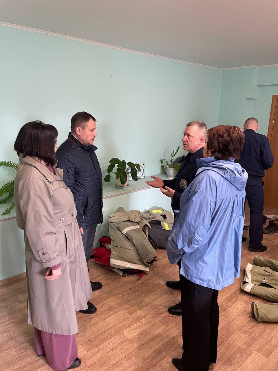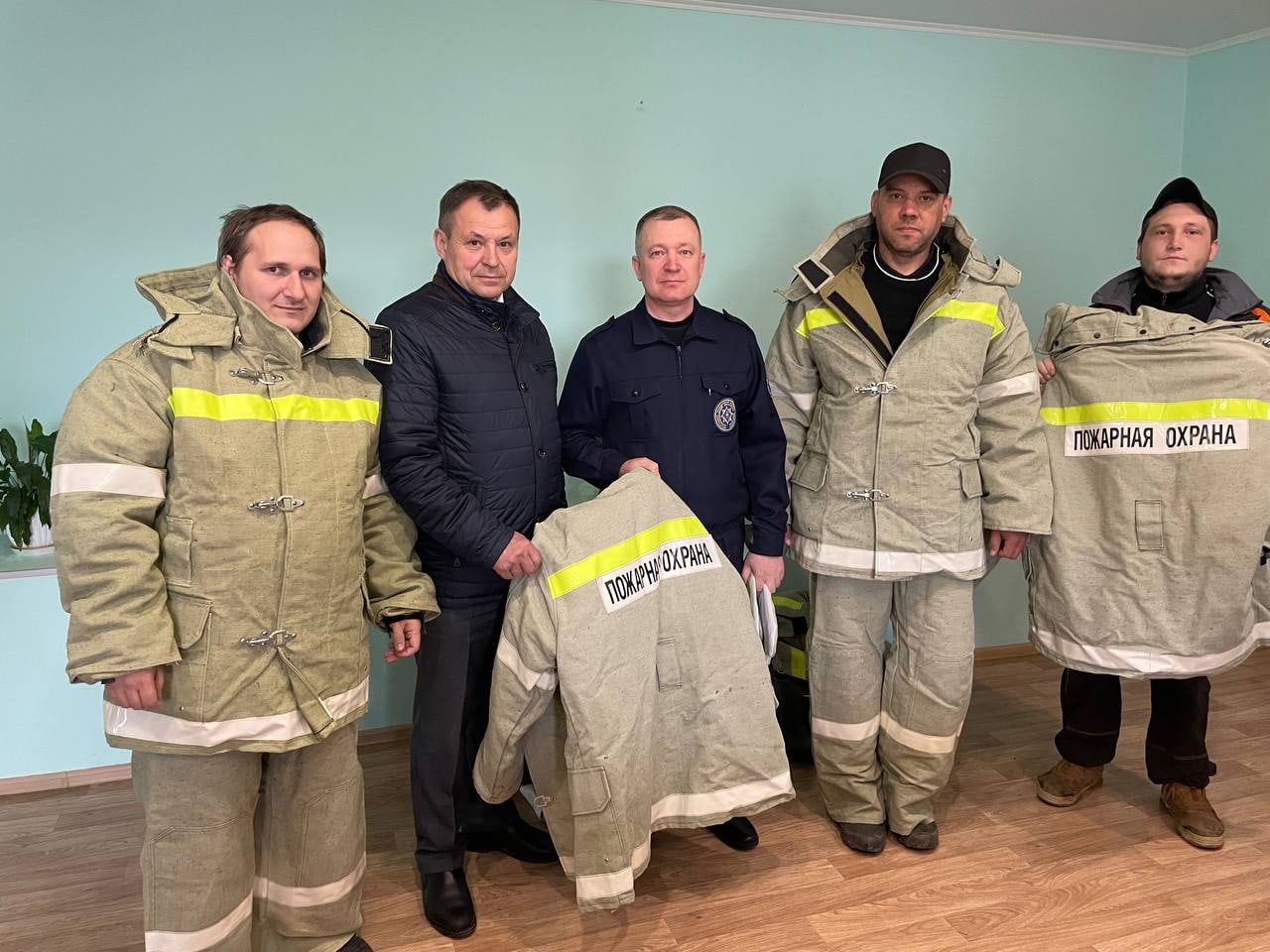 Сергей Владимирович встретился с начальником добровольной пожарной команды Николаем Бобаль и вручил 5 комплектов боевой одежды и 5 ранцевых огнетушителей.