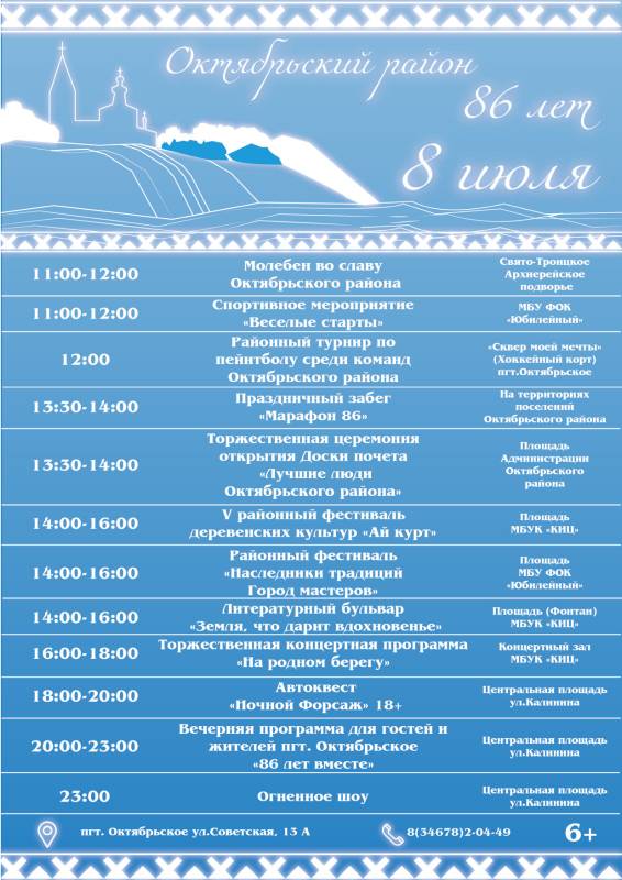 По просьбе наших жителей праздничные мероприятия, посвященные празднованию 86-летия Октябрьского района, перенесены на выходной день 8 июля.