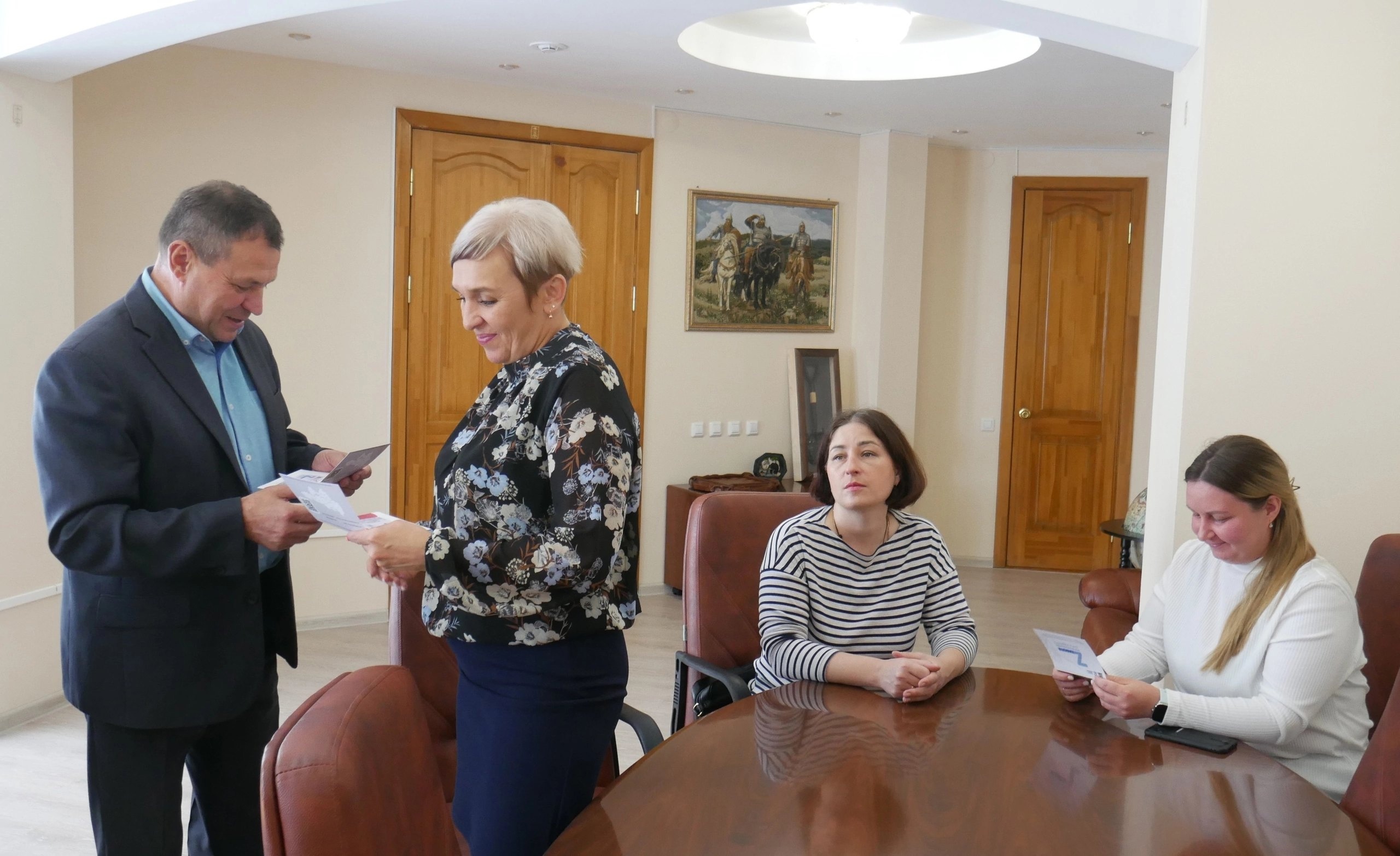 Сегодня Сергей Заплатин вручил семьям военнослужащих первые в Октябрьском районе региональные карты поддержки «Zaбота»