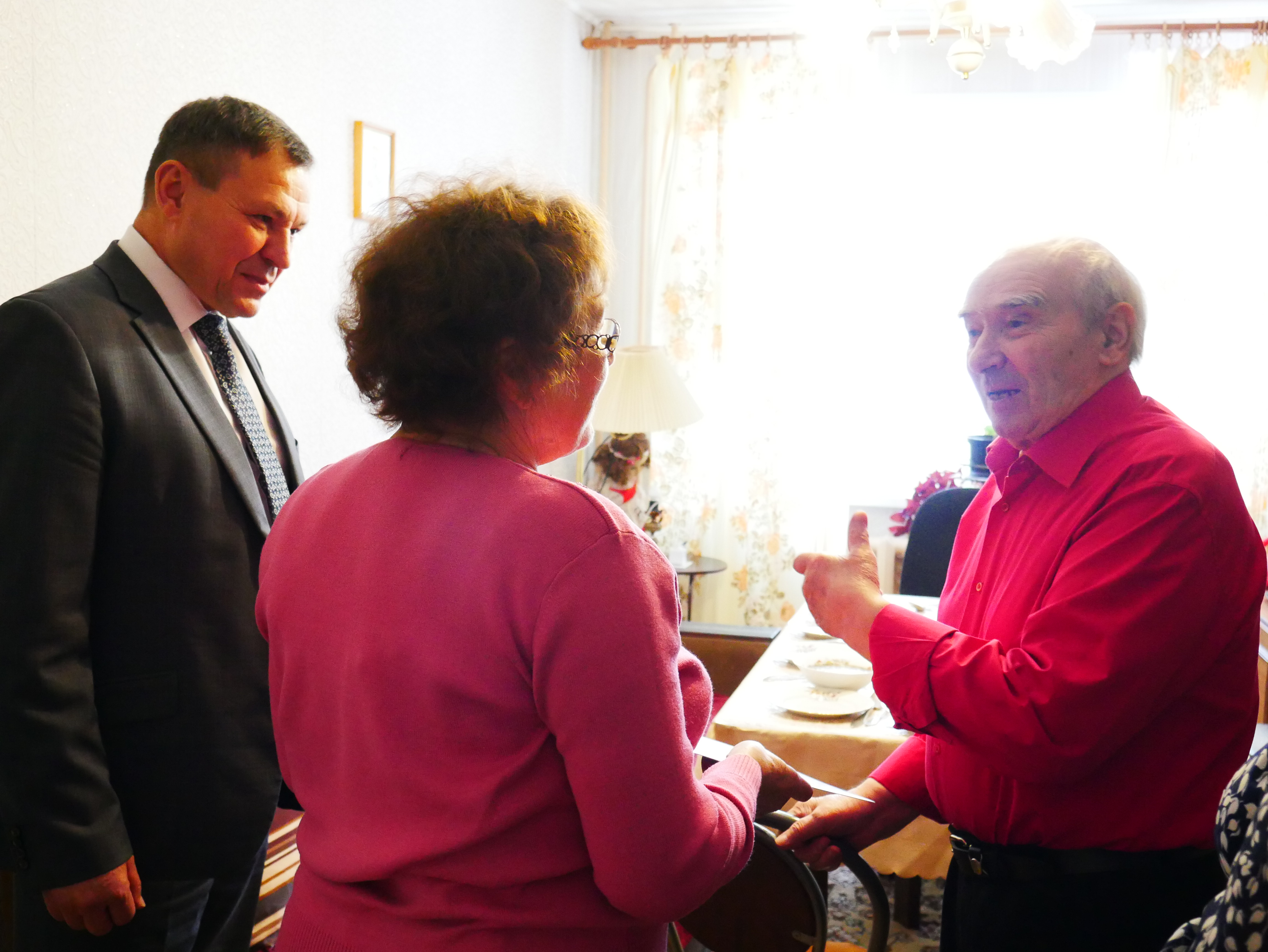 «Низкий поклон вам за ту сложную жизненную дорогу, по которой Вы прошли достойно, будучи участником исторических событий и трудясь во благо будущего поколения», - обратился к виновнику торжества глава Октябрьского района Сергей Заплатин.