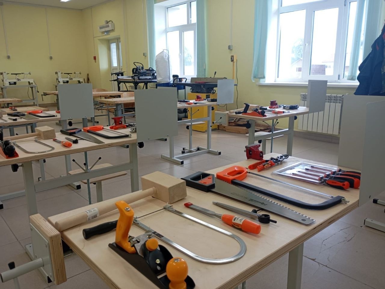 В кабинетах труда и юноши, и дувушки смогут не только изучать теорию, но и применять полученные знания на практике. На средства федерального бюджета и субвенции образовательных организаций закуплены наборы кухонного инвентаря, плиты, швейные машинки, инструменты для кройки и шитья, верстаки, тиски и столярные наборы.