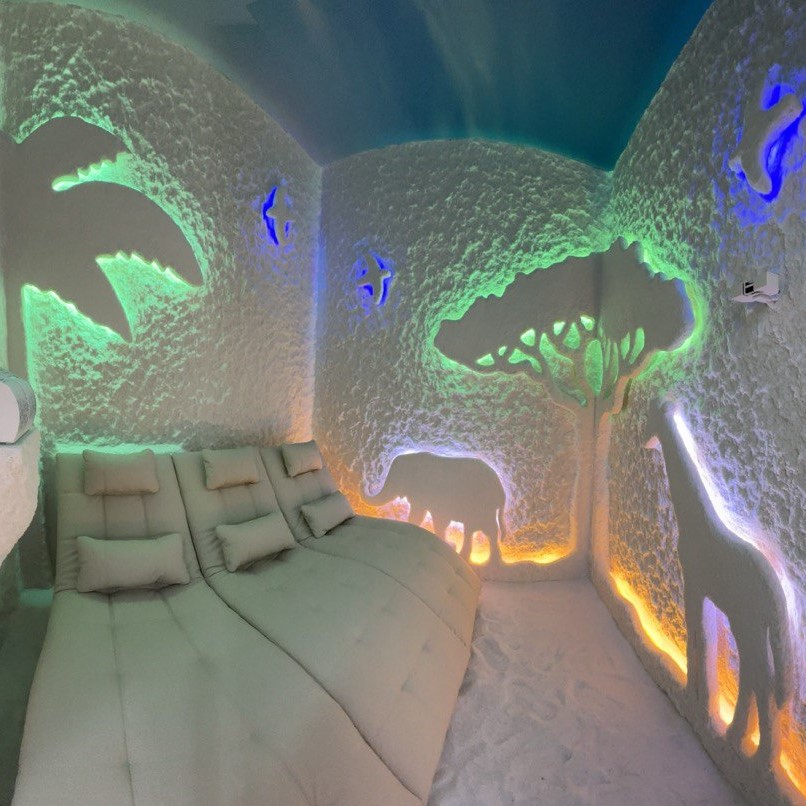 Специально оборудованная комната имитирует условия настоящей соляной шахты. Стены и пол покрыты слоем натуральной морской соли, а специальное устройство – галогенератор – насыщает воздух мельчайшими частицами соли. Дети проводят определенное количество времени в помещении, наслаждаясь спокойствием и чистым воздухом.