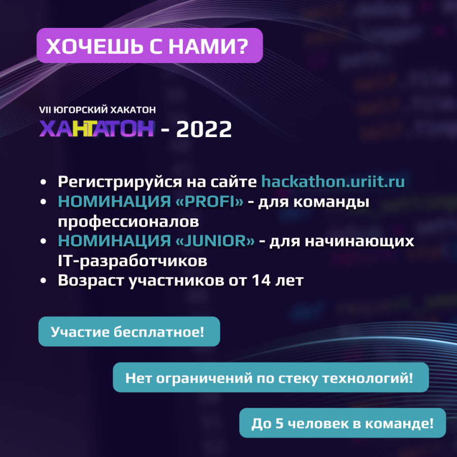 Успевайте подать заявку на участие в ХАНТАТОН – 2022 на сайте hackathon.uriit.ru. Станьте частью цифрового будущего уже сейчас!