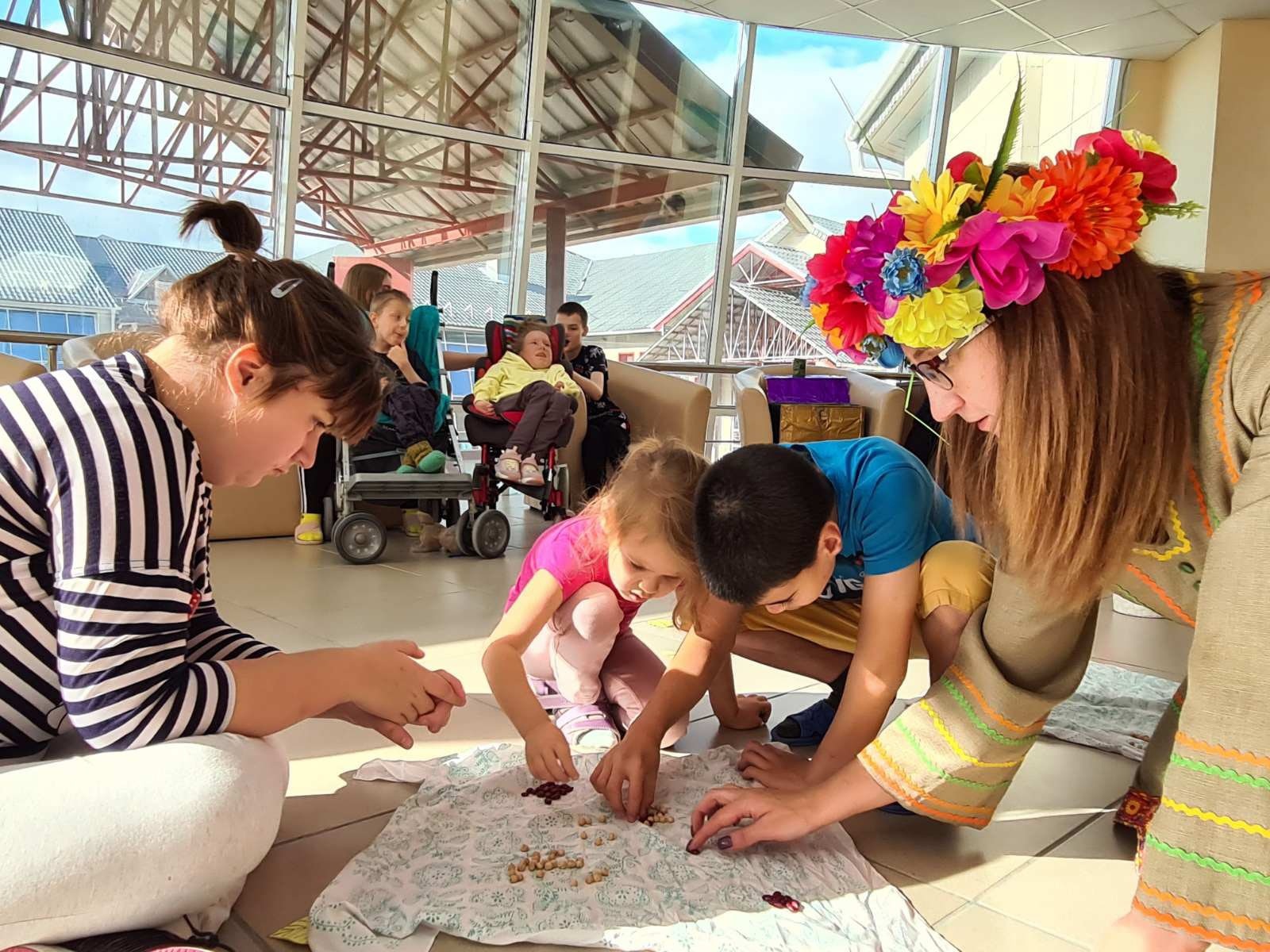 Для самых проворных и быстрых ребят госпожа Осень приготовила кропотливую работу, нужно было рассортировать горох и фасоль.