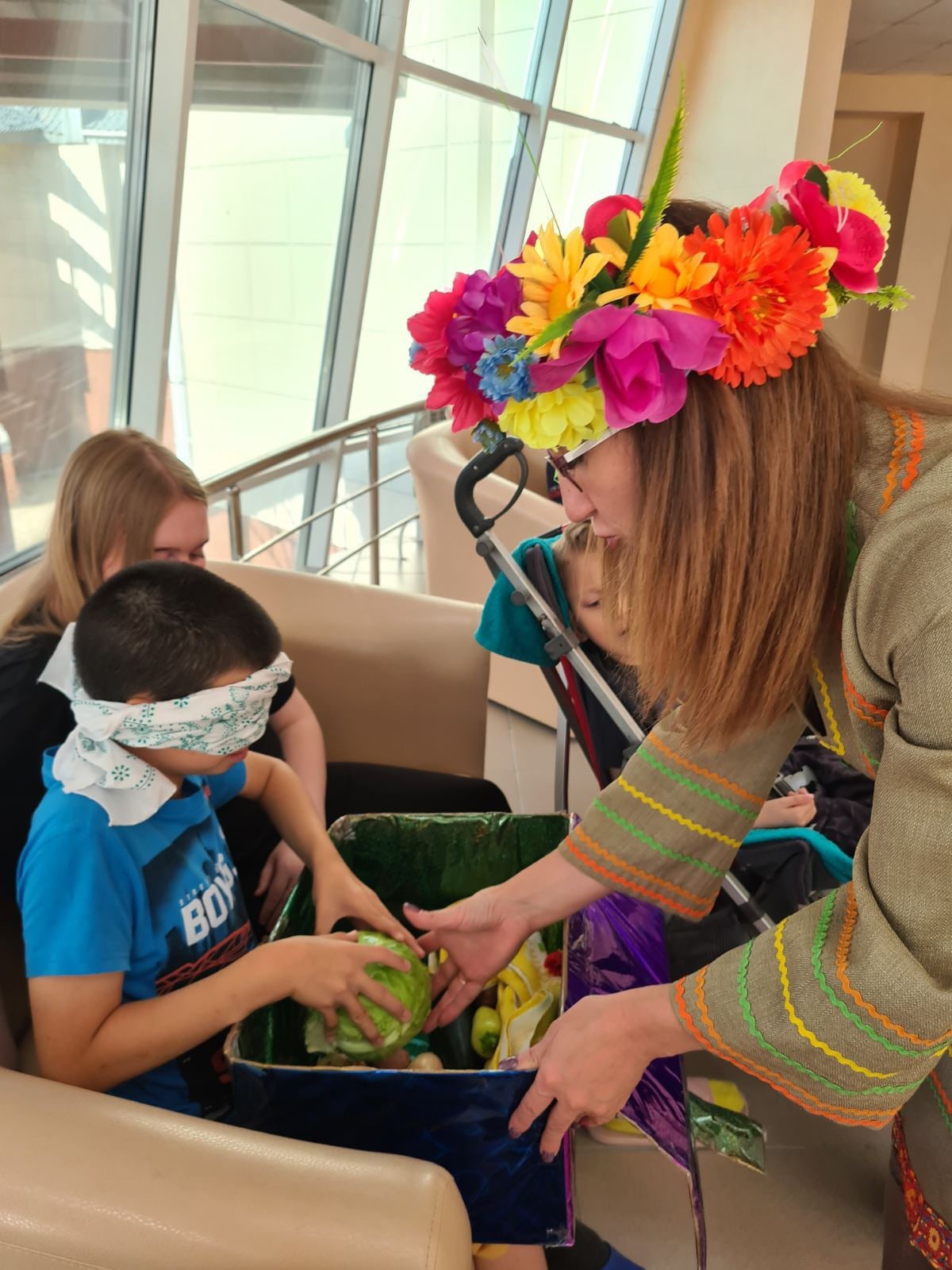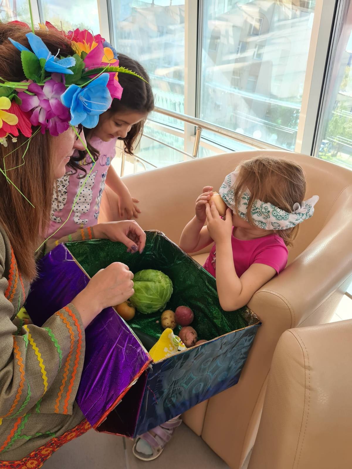 Одним из полюбившихся конкурсов, оказался конкурс "Угадай меня", здесь нужно было потрудиться и угадать с завязанными глазами осенние овощи и фрукты.