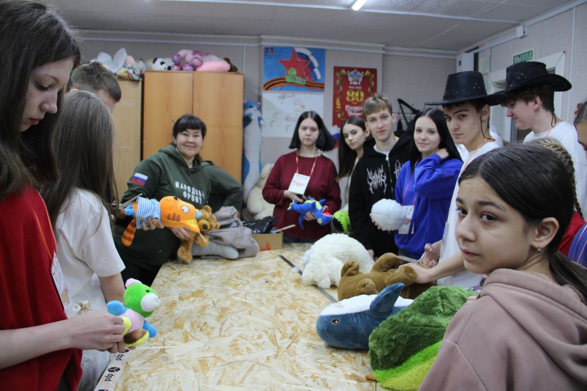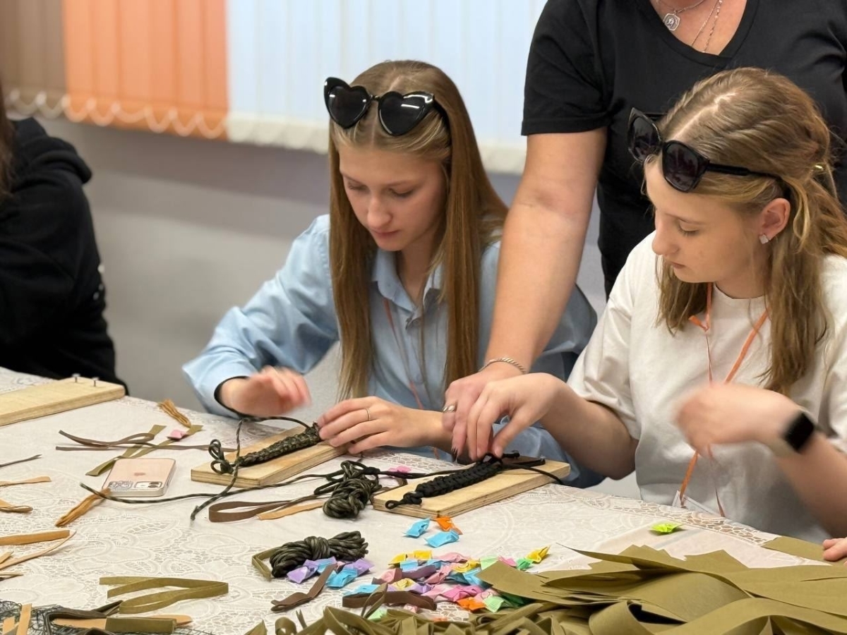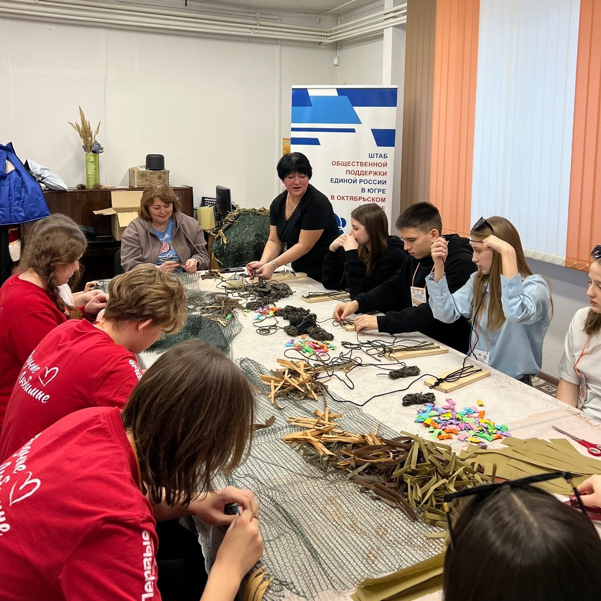 Конечно, волонтеры не остались в стороне и оказали поддержку нашим защитникам, участникам специальной военной операции, посетив штабы помощи «СВОих не бросаем» и «СВОим Героям». Ребята приняли участие в мастер-классах по изготовлению тактических браслетов, окопных сетей, а также плетению маскировочных костюмов «Леший».