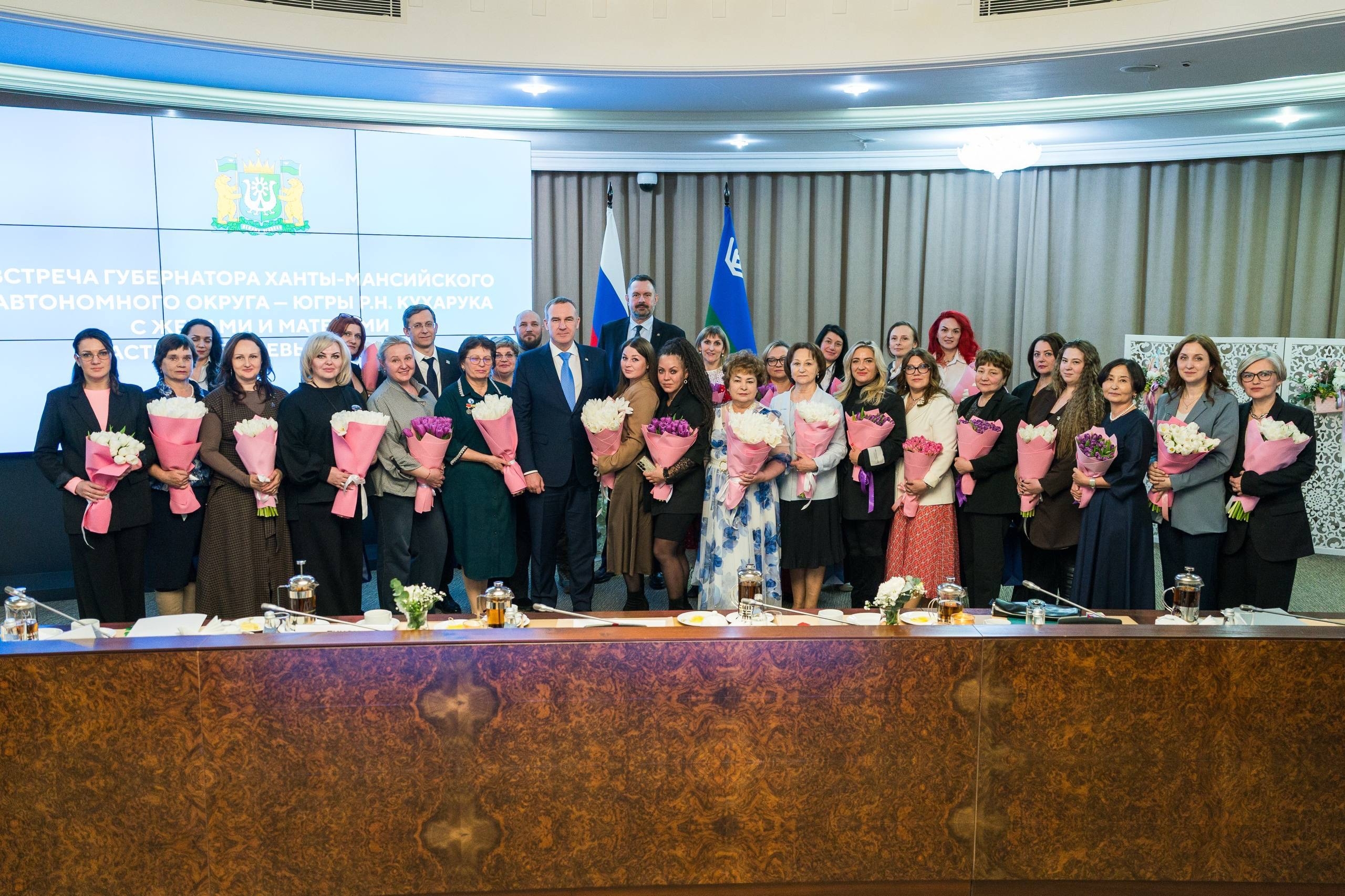 В Ханты-Мансийске Губернатор Югры, член Президиума регионального политического совета «Единой России» Руслан Кухарук встретился с жёнами и матерями защитников. Встречу посвятили участию женщин в гуманитарных миссиях, добровольчестве и проектах, направленных на поддержку бойцов и их семей.