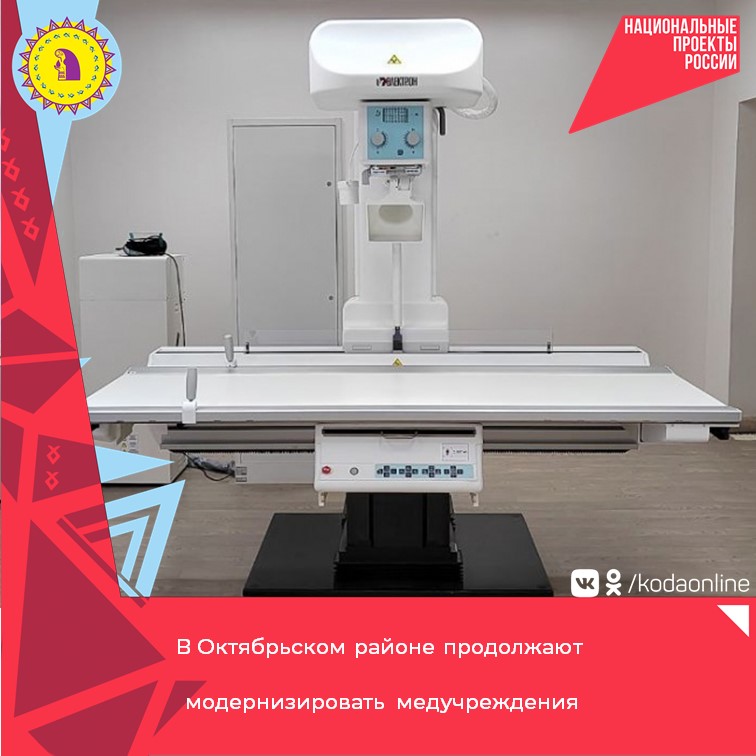 Октябрьская районная больница активно участвует в программе модернизации первичного звена, благодаря чему приобретается современное высококачественное оборудование, обновляется автопарк учреждений здравоохранения, строятся врачебные амбулатории.