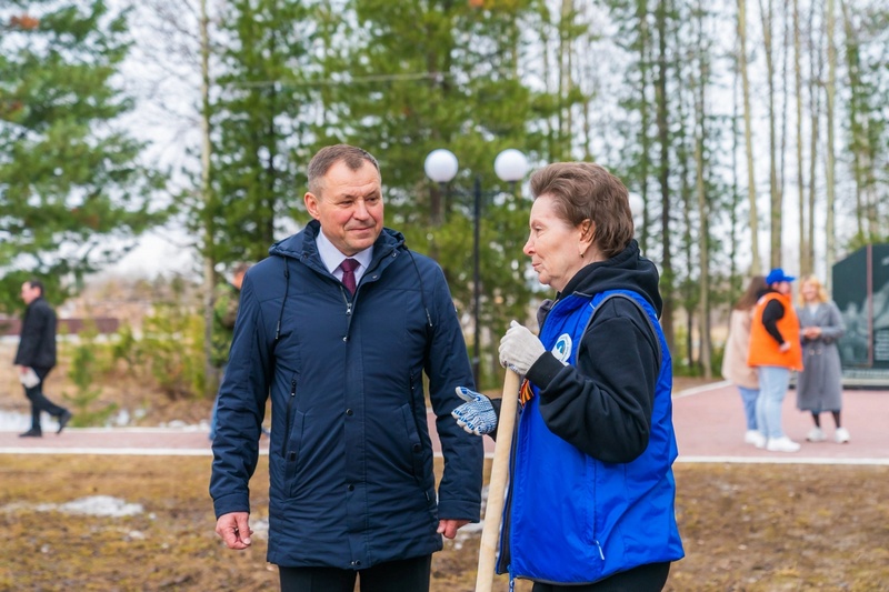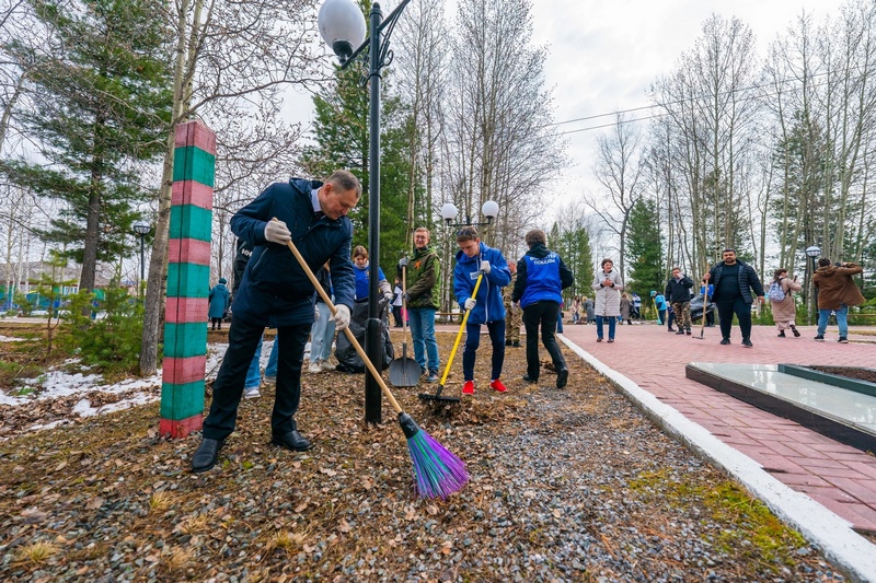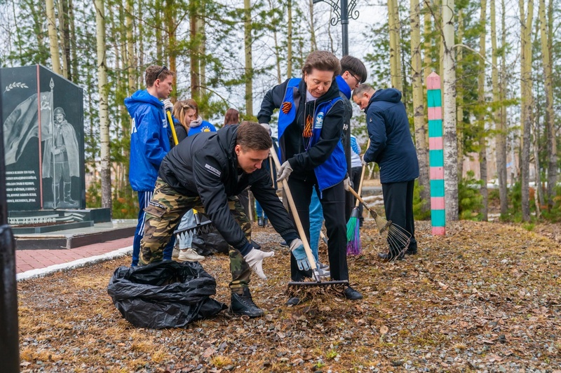 4 мая 2023В одной из таких акций принял участие глава Октябрьского района Сергей Заплатин вместе с Губернатором Югры Натальей Комаровой, которая накануне посетила наш район. Благоустраивали территорию у памятника «Воинам — защитникам Отечества» в поселке Сергино.
