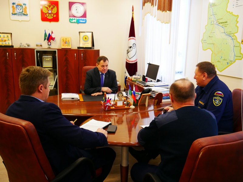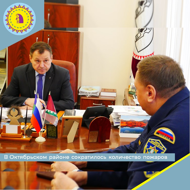 11 января 2023Глава Октябрьского района Сергей Заплатин обсудил пожароопасную обстановку в муниципалитете с директором филиала казенного учреждения «Центроспас-Югория» по Октябрьскому району Анатолием Горчинским.
