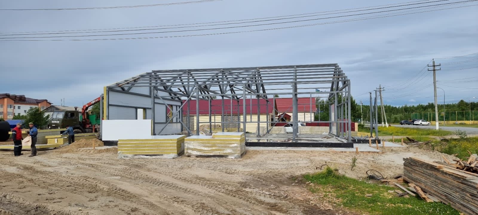 Строительство объекта началось в июне этого года. За три месяца подрядчик установил модульную конструкцию амбулатории, завершил работы по монтажу каркаса, бетонных полов, кровли и наружной отделке здания. В настоящий момент ведутся внутренние работы по отделке помещений и благоустройство прилегающей территории.