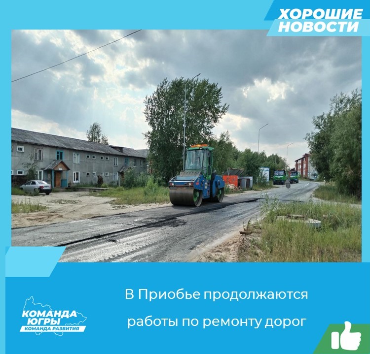 На сегодняшний день в Приобье ведутся подрядные работы по ремонту и восстановлению дорожного покрытия на автомобильных дорогах, строительству заездных карманов, ливневых стоков и нанесению разметки на сети приобских дорог.