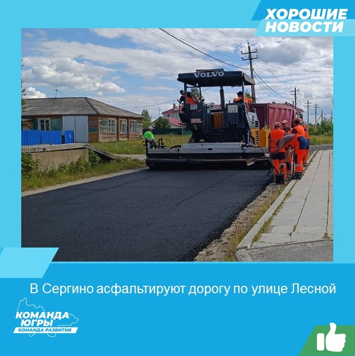 Так, в поселке Сергино полным ходом идут работы по асфальтированию дороги по улице Лесная.