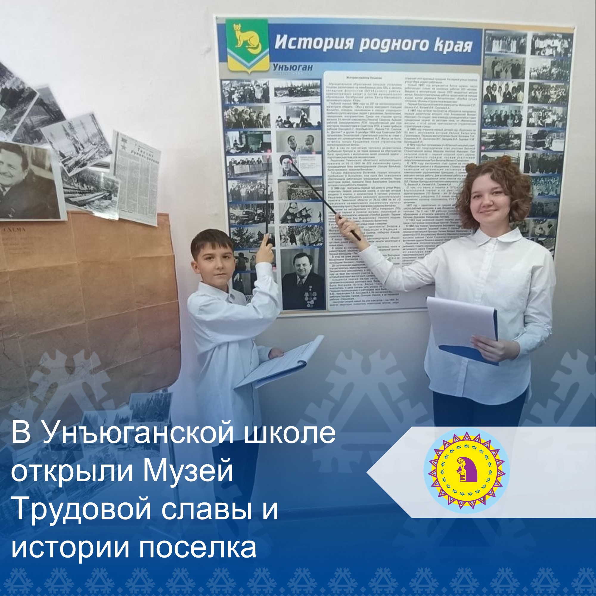 2 декабря 2024В Унъюганской школе № 2 им. Альшевского М. И. открылся Музей Трудовой славы и истории поселка Унъюган. Это событие стало важным шагом к сохранению исторической памяти и культурного наследия небольшого северного поселка.