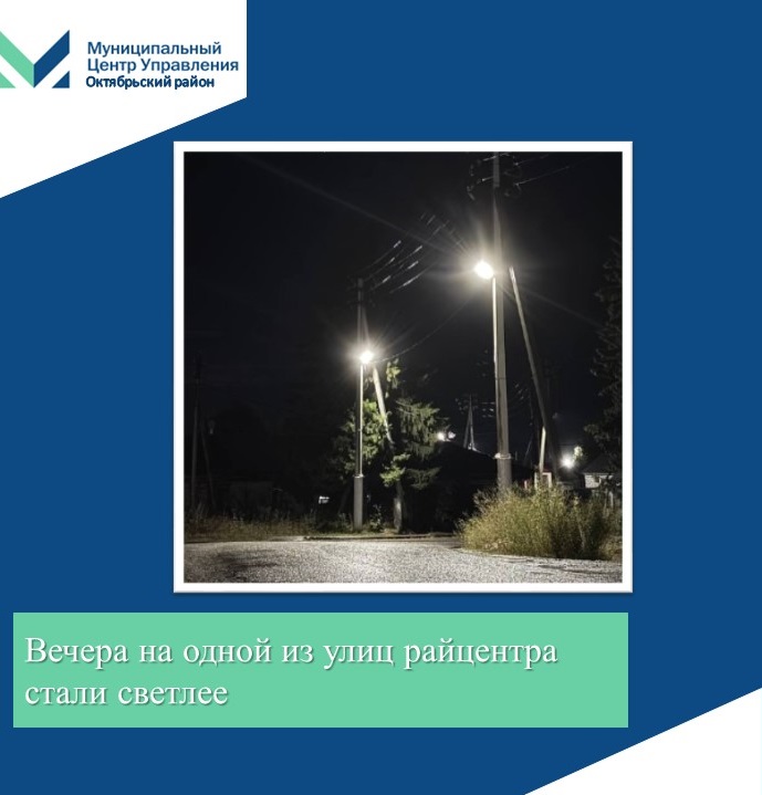Одна из жительниц районного центра обратилась через платформу обратной связи "Госуслуги. Решаем Вместе" с просьбой установить фонари на неосвещенном участке от магазина «Красное и Белое» в направлении улицы Шмигельского. Муниципальный центр управления Октябрьского района принял сообщение в работу и направил его по компетенции главе городского поселения Октябрьское для организации дальнейшей работы.