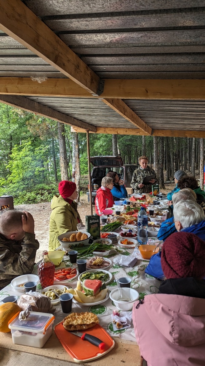 Участники принесли из дома различные продукты и соления, приготовили ароматный сибирский чай в настоящем самоваре.