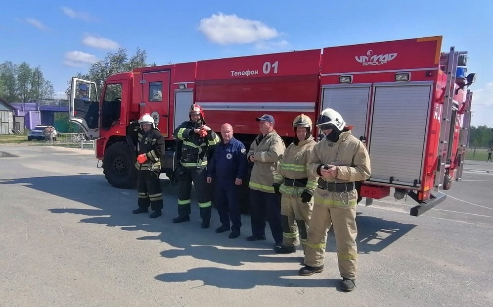 На место условного пожара приехала дежурная смена пожарной части Центроспаса, огнеборцы приступили к ликвидации условного пожара.