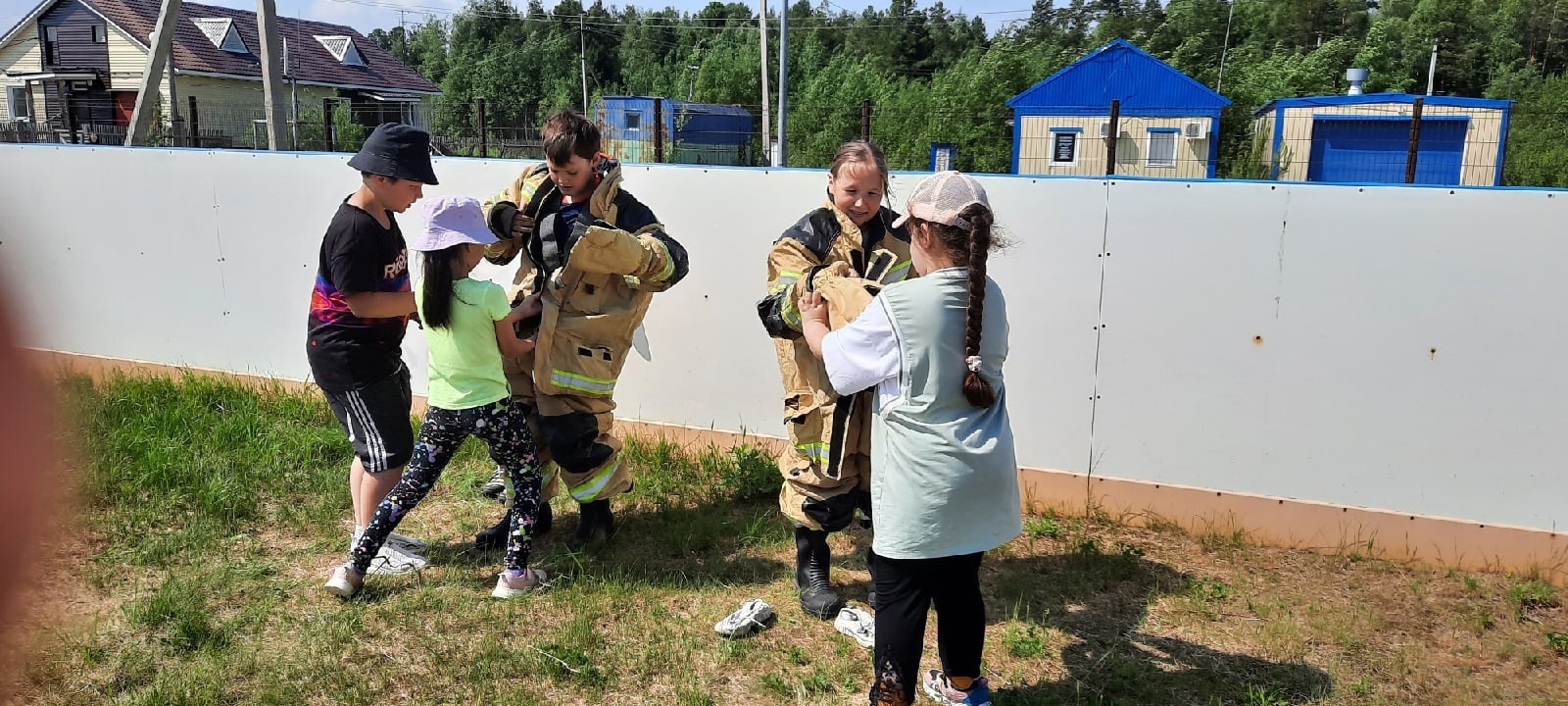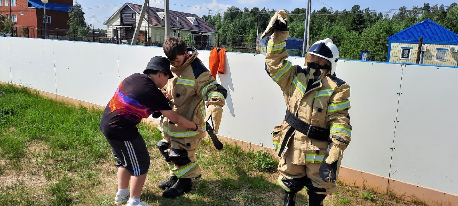 А в селе Каменное ребята почувствовали себя в роли настоящих пожарных - примерили форму спасателей, соревновались на скорость и ловкость.