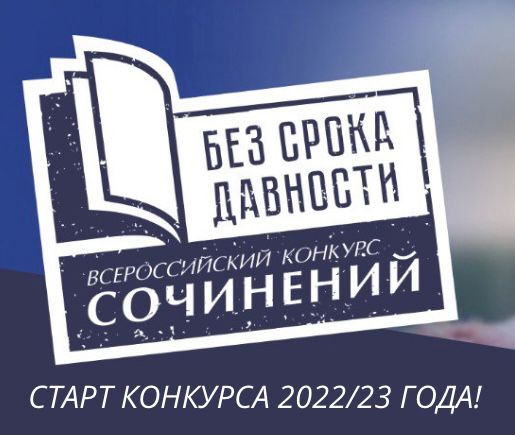 30 декабря 2022Департаментом образования и науки Ханты-Мансийского автономного округа – Югры совместно с автономным учреждением Ханты-Мансийского автономного округа – Югры «Центр военно-патриотического воспитания и подготовки граждан к военной службе» проводится Всероссийский конкурс сочинений «Без срока давности» среди обучающихся образовательных организаций, реализующих образовательные программы основного общего и среднего общего образования, в 2022-2023 учебном году.