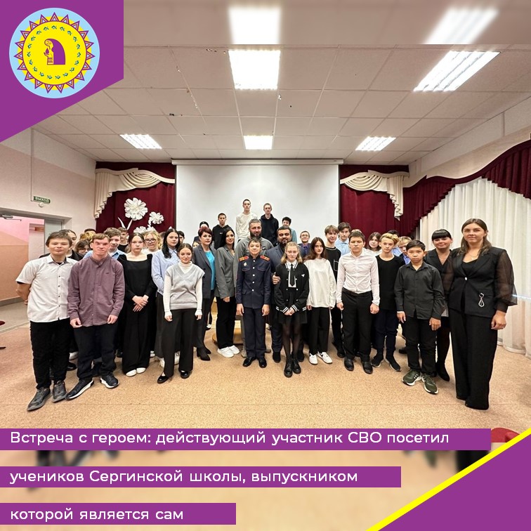 6 октября 202329 сентября 2023 года в Сергинской школе им. Н.И. Сирина состоялась встреча школьников с земляком, участником специальной военной операции.