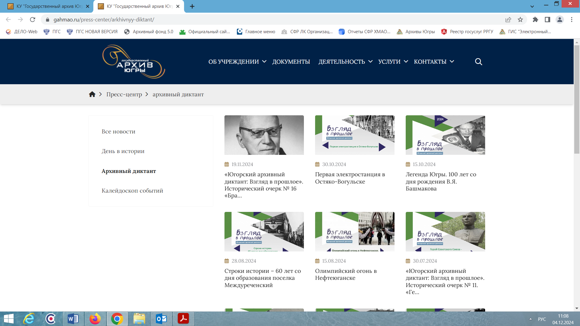 4 декабря 2024Приглашаем принять участие в финальном этапе волонтерского проекта «Югорский архивный диктант: взгляд в прошлое – 2024»!