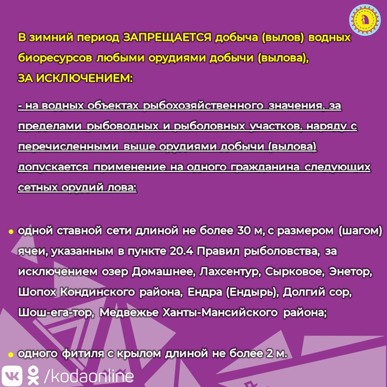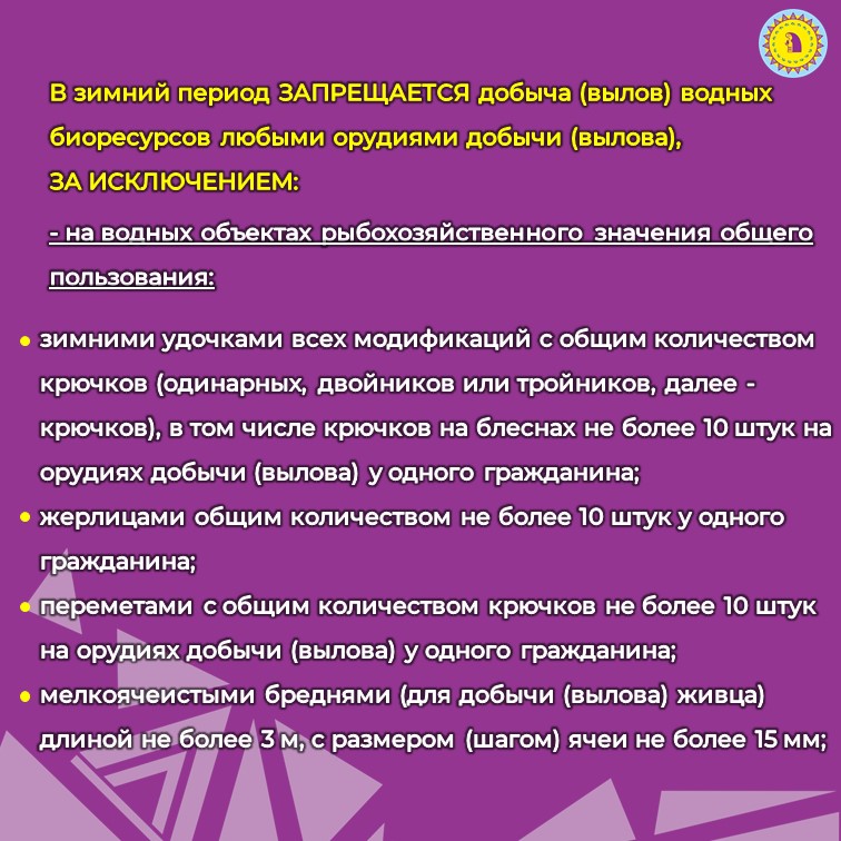 23 ноября 2023Отдел госконтроля по ХМАО-Югре Нижнеобского ТУ Росрыболовства напоминает рыбакам - любителям о необходимости соблюдения Правил рыболовства для Западно-Сибирского рыбохозяйственного бассейна при зимней рыбалке. Они - в наших карточках.