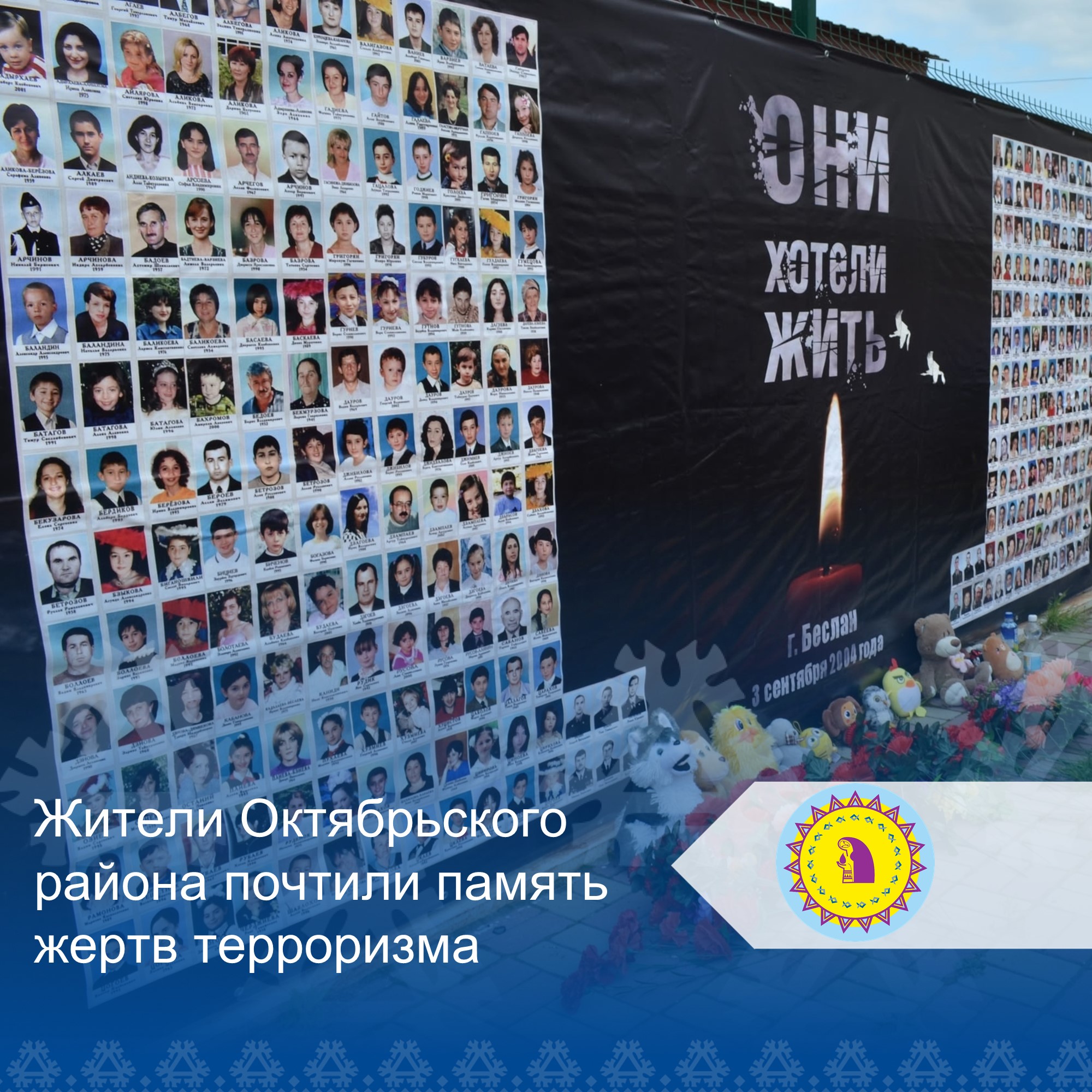 Жители Октябрьского района не остались в стороне и почтили память жертв терроризма. В городских и сельских поселениях прошли акции памяти, митинги, возложения цветов, минуты молчания, классные часы и выставки, посвященные Дню солидарности в борьбе с терроризмом.