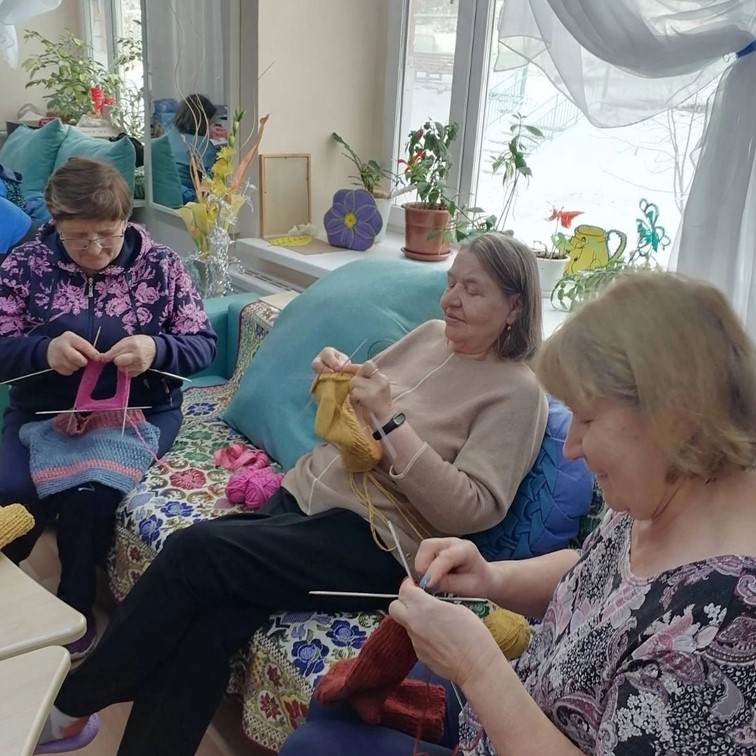 Он реализуется в двух формах: групповая – формат «Творческая мастерская», совместное коллективное вязание вещей в учреждении с возможными элементами обучения и индивидуальная – формат «Мастерская на дому» - вязание теплых вещей у себя дома и передача готовых изделий.