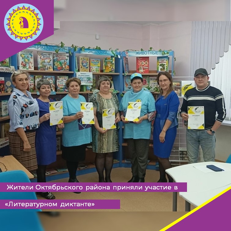 Помимо этого, в «Литературном диктанте» приняли участие и педагоги Октябрьской школы, а также учащиеся разных возрастов. К тому же проверить свои знаниями по литературе присоединились активисты ветеранского движения «Серебряные волонтёры». По окончании диктанта участники были награждены сертификатами.