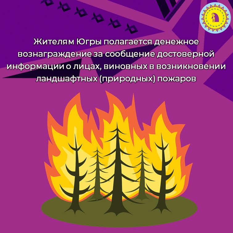 Жителям Югры полагается денежное вознаграждение за сообщение достоверной информации о лицах, виновных в возникновении ландшафтных (природных) пожаров