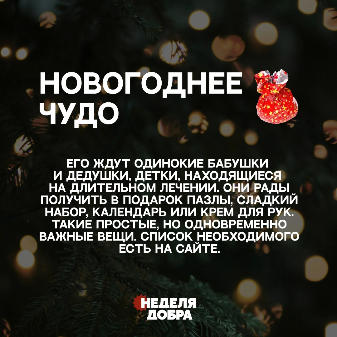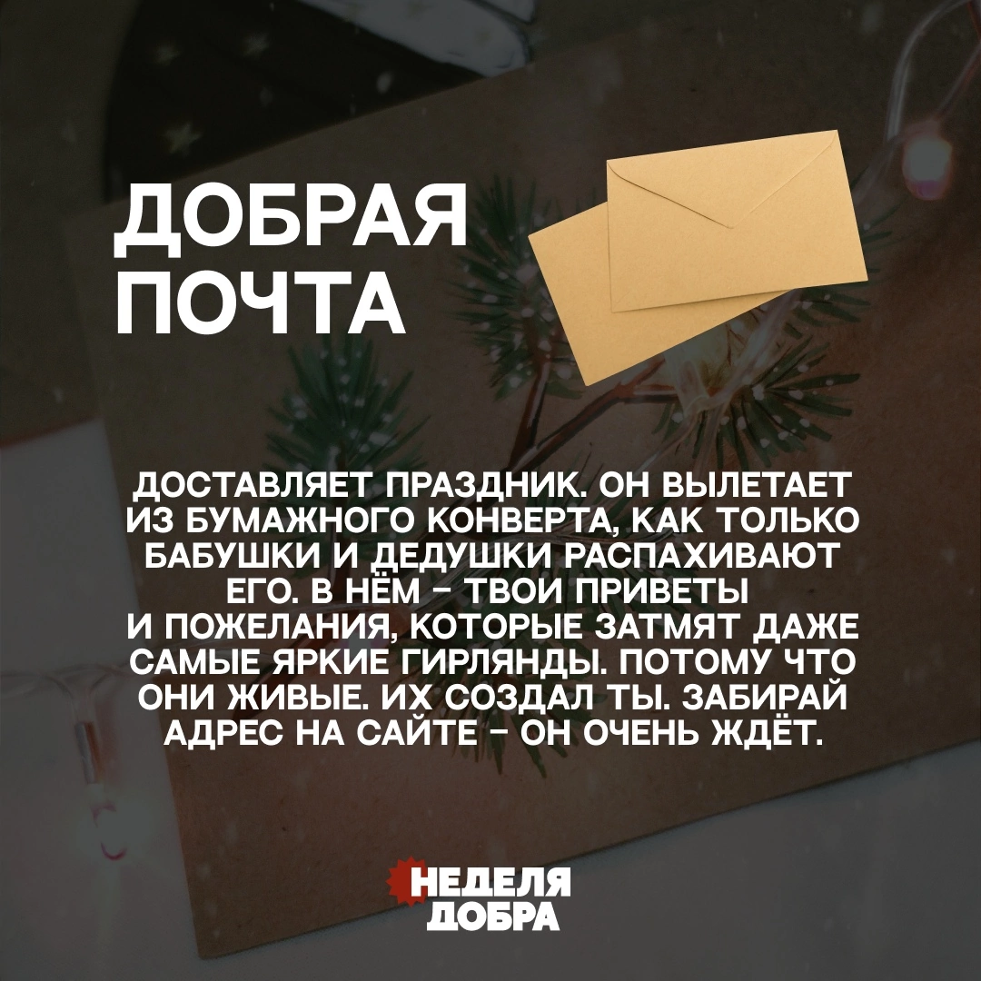 12 декабря 2023Добрая неделя — возможность отблагодарить тех, кто ежедневно делится своим теплом с окружающими, тех, кто нашел в своей повседневной жизни место для подвига. А еще возможность присоединиться к доброму движению, которое объединяет людей по всей планете.