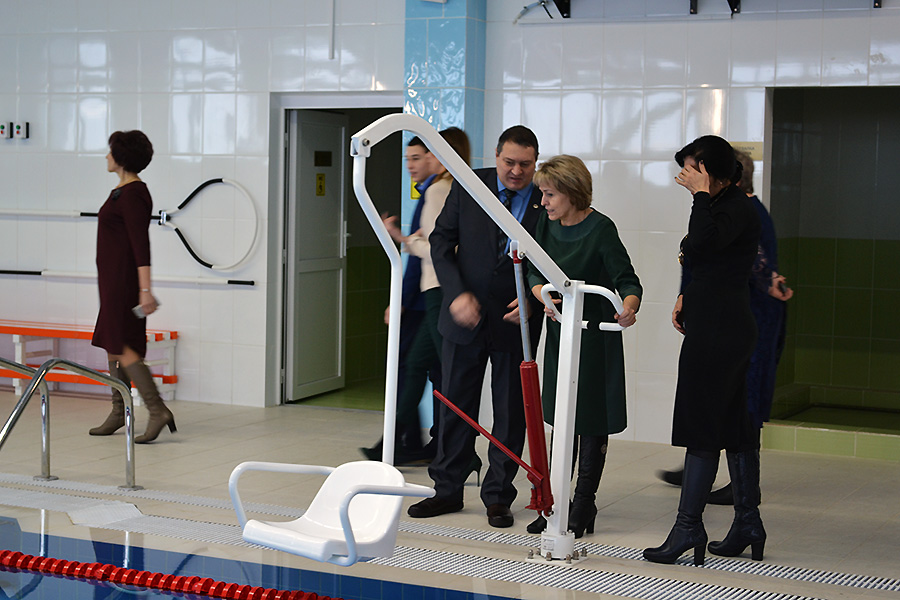 Губернатор Югры Наталья Комарова вместе с общественниками района приняла участие в приемке спортивного комплекса с бассейном в пгт. Приобье.