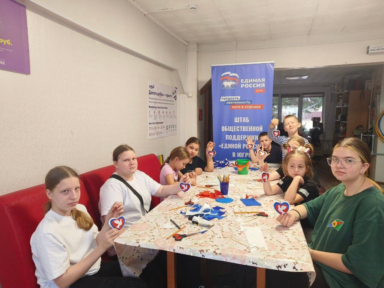 Накануне праздника на площадках Штаба общественной поддержки «Единой России» Октябрьского района в Шеркалах и Карымкарах состоялись творческие мастер-классы для школьников. В мероприятиях приняли участие порядка 20 ребят, в их числе и дети участников специальной военной операции.