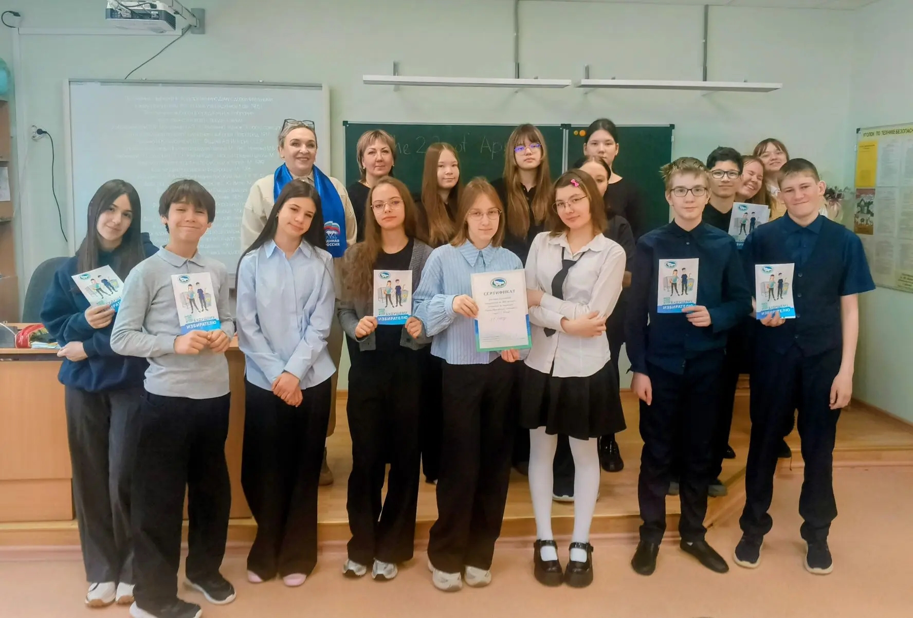 В Октябрьской средней школе для старшеклассников организовали мероприятие, посвященное Дню молодого избирателя. Представители партии «Единая Россия» рассказали ребятам, как стать избирателем, что для этого нужно и как проходит голосование. Учащиеся узнали, что выборы бывают не только федеральными, но и региональными, и местными, а каждый голос - это вклад в будущее всего общества. Для наглядности школьникам показали видеоролик «Азбука молодого избирателя» из фондов Президентской библиотеки.