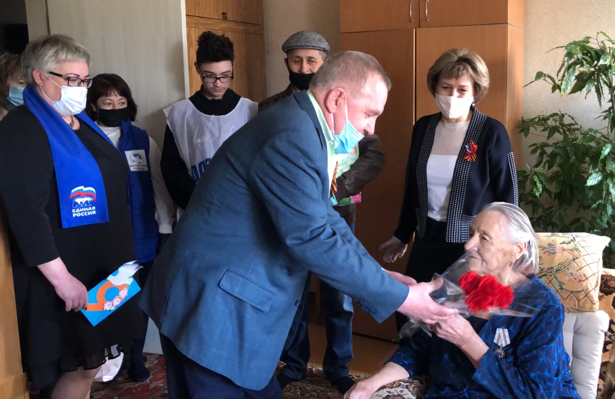 Накануне Дня Победы семья труженицы тыла Надежды Ефремовны Раскидной радушно встретила гостей. К поздравлениям члена фракции «Единая Россия» в Думе автономного округа Леонида Михалко присоединились глава Октябрьского района Анна Куташова, член фракции «Единая Россия» в Думе Октябрьского района Евгений Ермаков, руководитель исполкома местного отделения партии Светлана Сумкина и молодогвардеец Даниель Рахматуллин.