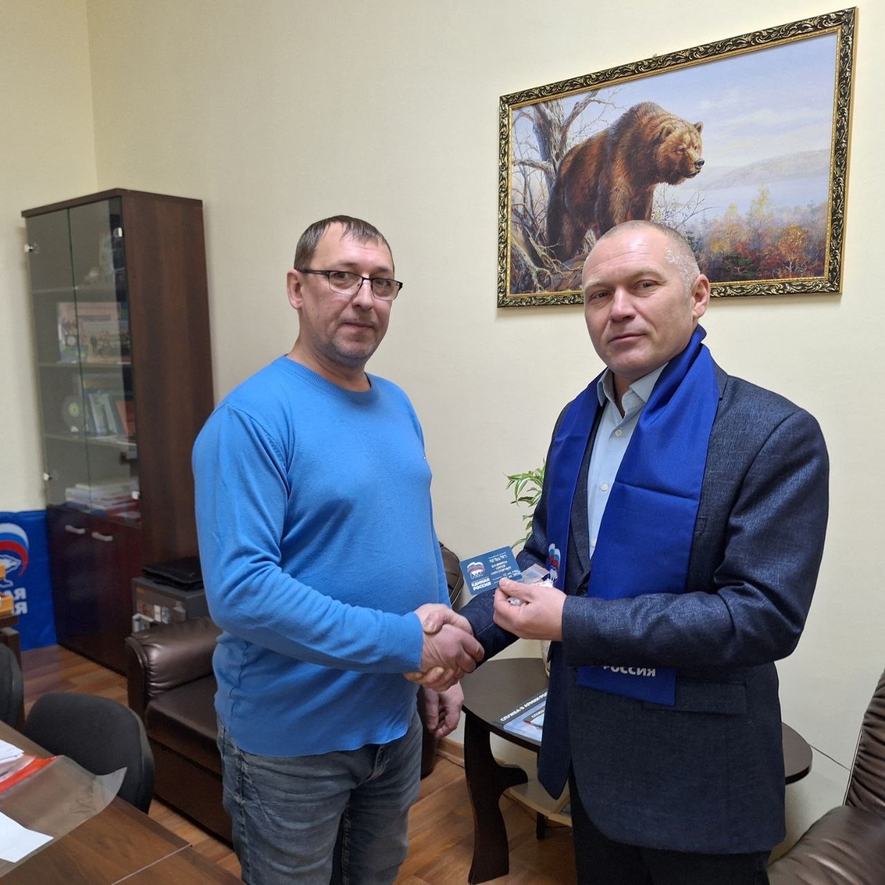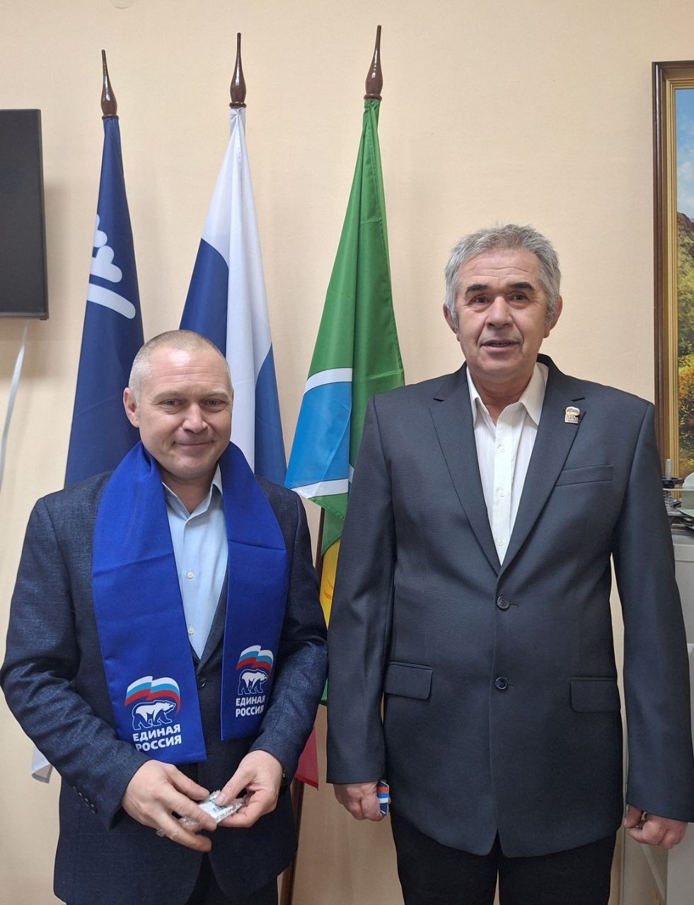 Накануне депутат Думы Октябрьского района Александр Козырчиков торжественно вручил партийные билеты двум жителям Андры. Среди новоиспеченных членов партии оказались Сергей Владимиров, сотрудник предприятия «Газпром трансгаз Югорск», и Владимир Невжинский, занимающийся индивидуальной предпринимательской деятельностью.