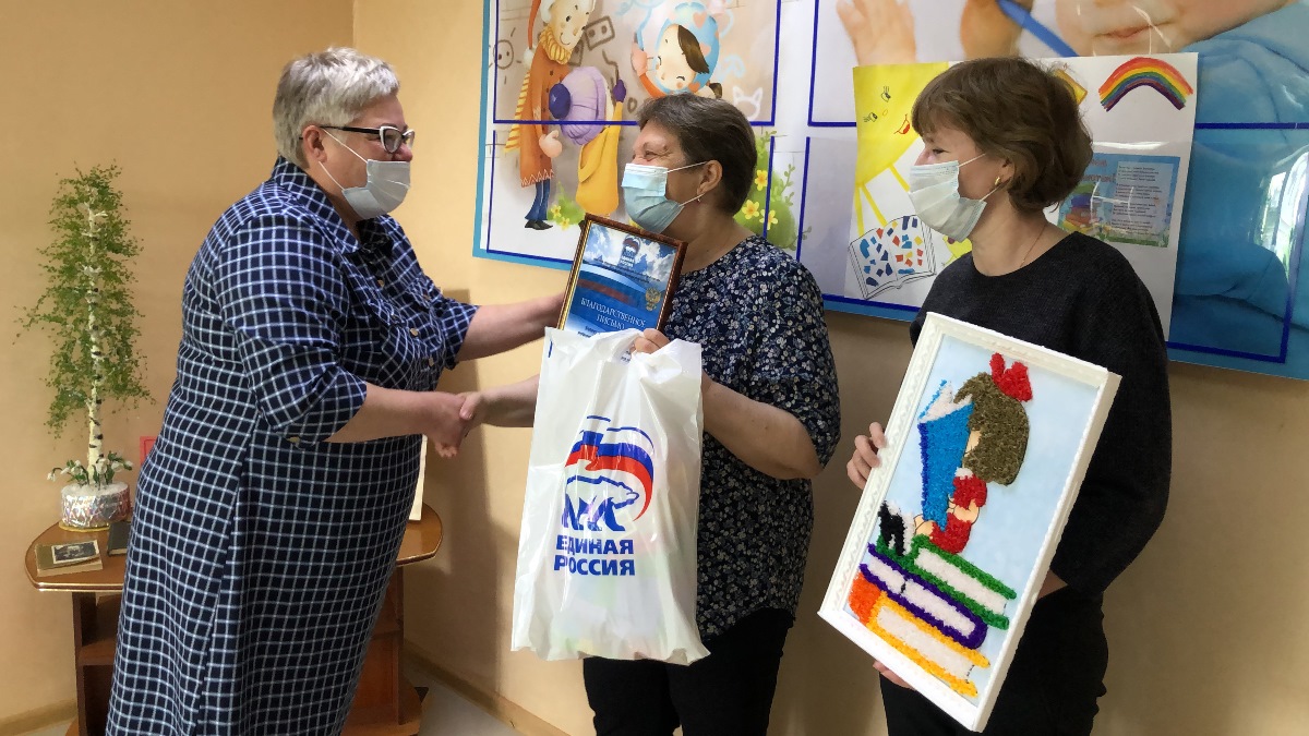 «Здесь много лет работают творческие, инициативные, универсальные специалисты с разносторонними навыками. Желание сделать все, чтобы читатель пришел снова, – ваши отличительные качества, которые вызывают искреннее уважение и восхищение. Приобская библиотека семейного чтения стала местом встреч, общения и отдыха людей разных поколений, которых объединяет, привитая им вашим трудом, любовь к литературе, творчеству. Благодарю за верность избранной профессии и многолетнее сотрудничество», - поздравила библиотекарей исполнительный секретарь местного отделения партии Светлана Сумкина, передавая благодарственное письмо, памятный подарок и презенты, сделанные руками воспитанников детского сада «Радуга».