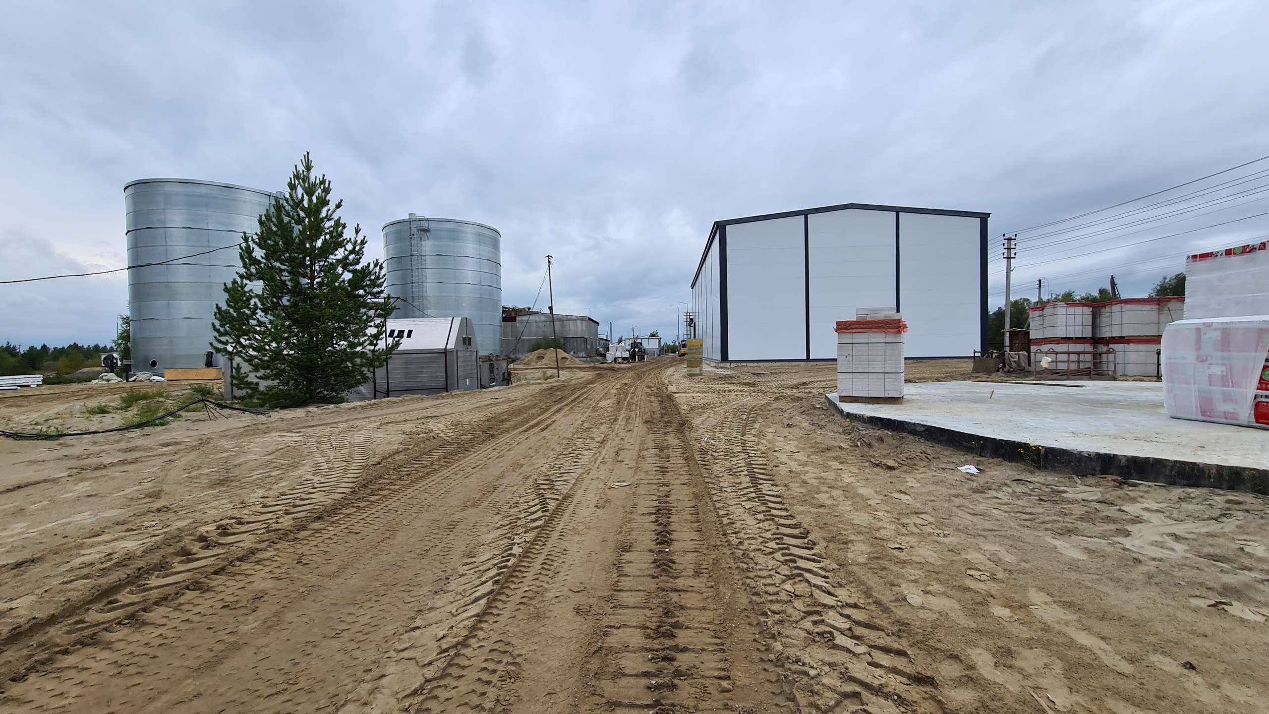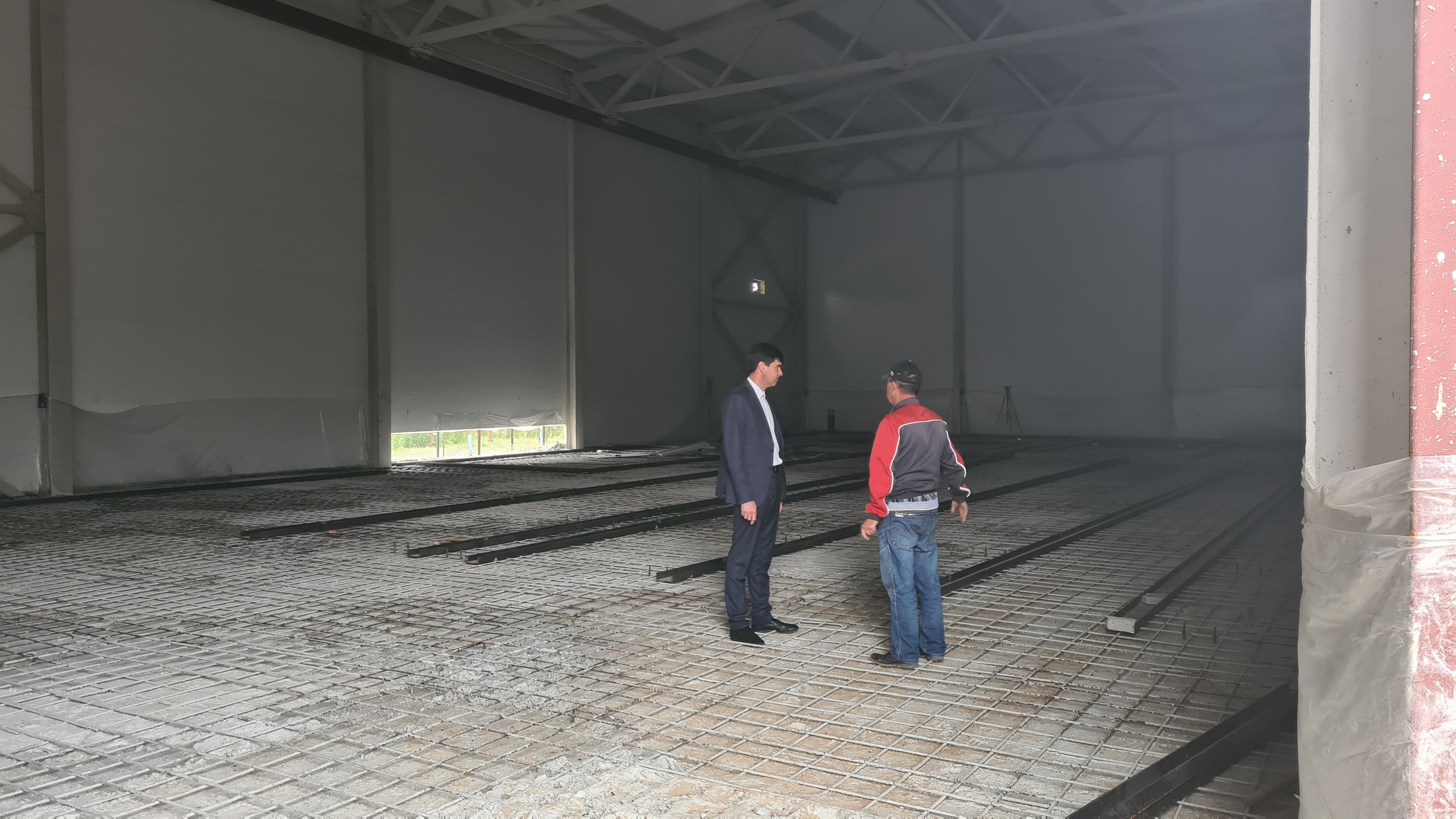 В административно-бытовом корпусе залит черновой бетонный пол, установлены перегородки в помещениях и лаборатории.