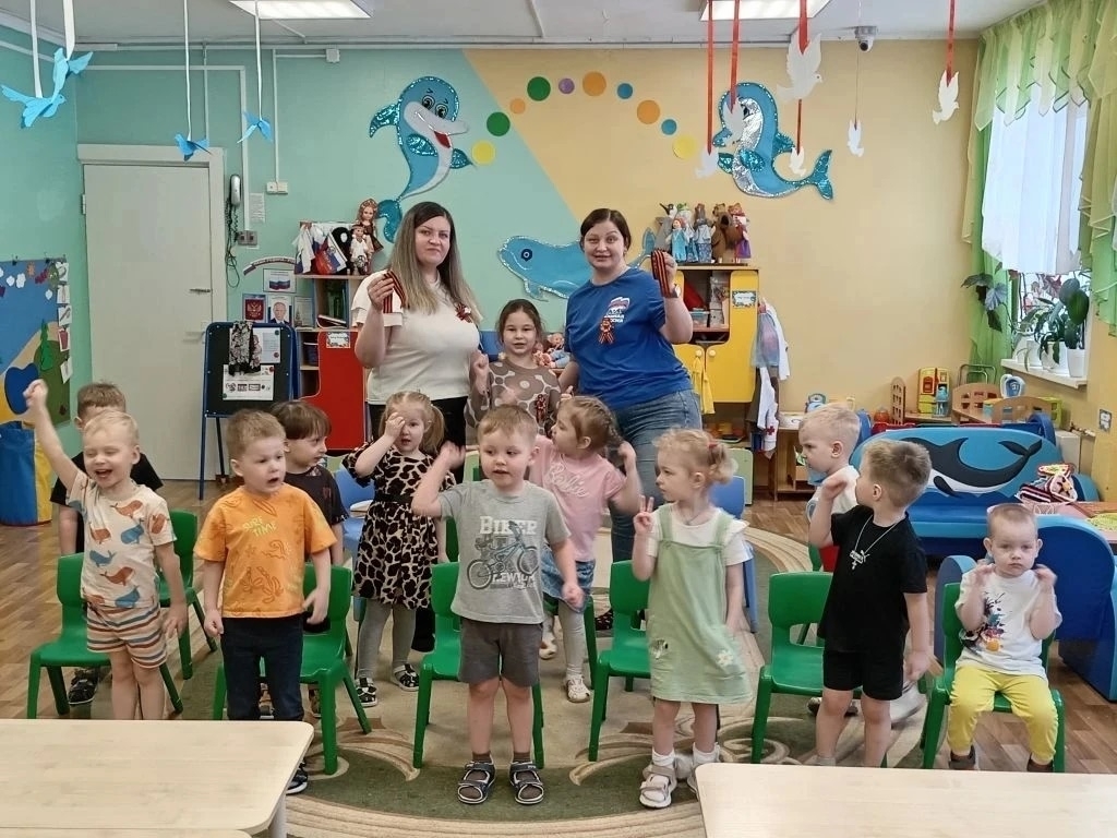 Для ребят был организован познавательный флешмоб «Защитники страны», где дети с гордостью демонстрировали свою причастность к великой истории. Воспитатель Татьяна Мелехина провела увлекательную беседу о значении георгиевской ленты, а затем все вместе посмотрели тематическое видео. Партийцы подготовили викторину, которая помогла детям в игровой форме узнать больше о символе Победы.