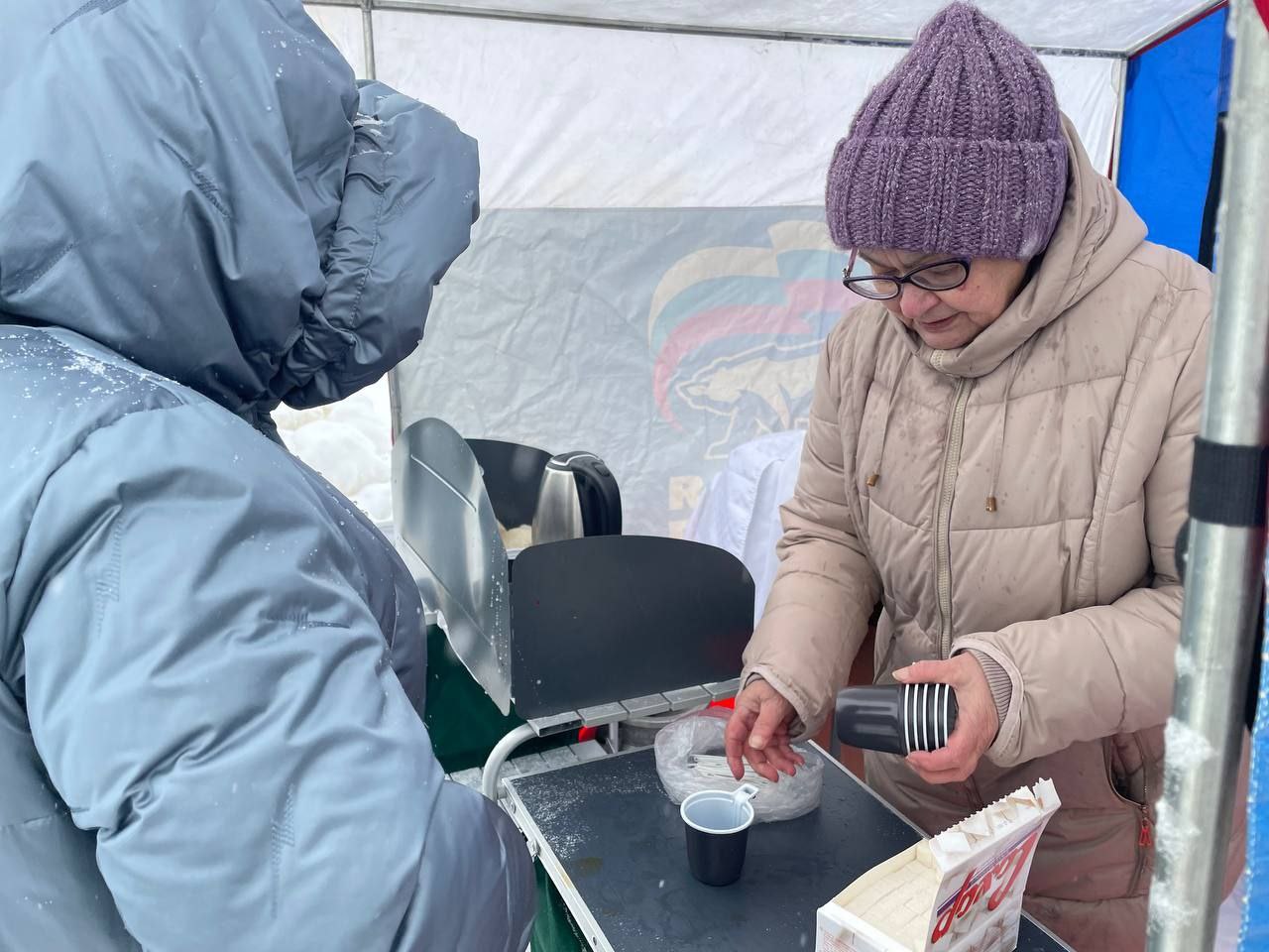 Горячим чаем с пирожками угощали жителей Приобья активисты партии у купели в праздник Крещения Господня