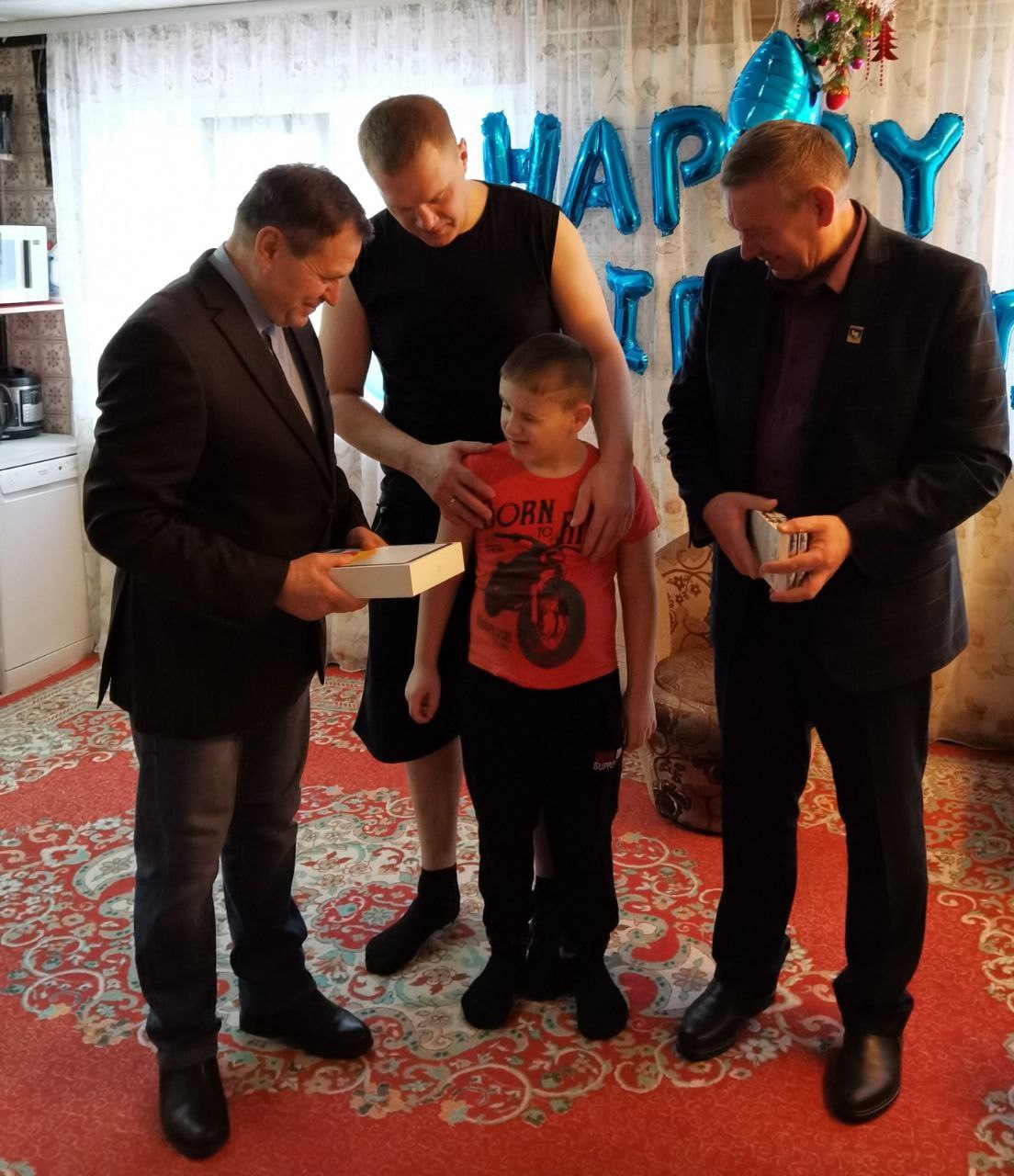 В рамках акции «Елка желаний» член фракции «Единая Россия» в Думе Октябрьского района Виктор Деркач совместно с главой Октябрьского района Сергеем Заплатиным вручили долгожданный подарок юному Альберту из Унъюгана. Мальчик мечтал о новом планшете.