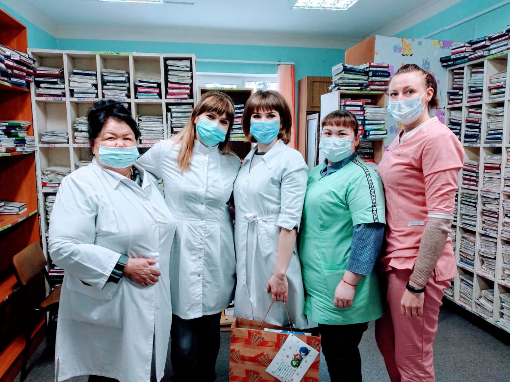 Добровольцы местного волонтерского центра в рамках мероприятий по поддержке медицинских учреждений автономного округа в сложной эпидемиологической обстановке передали праздничные наборы в поликлиники района.