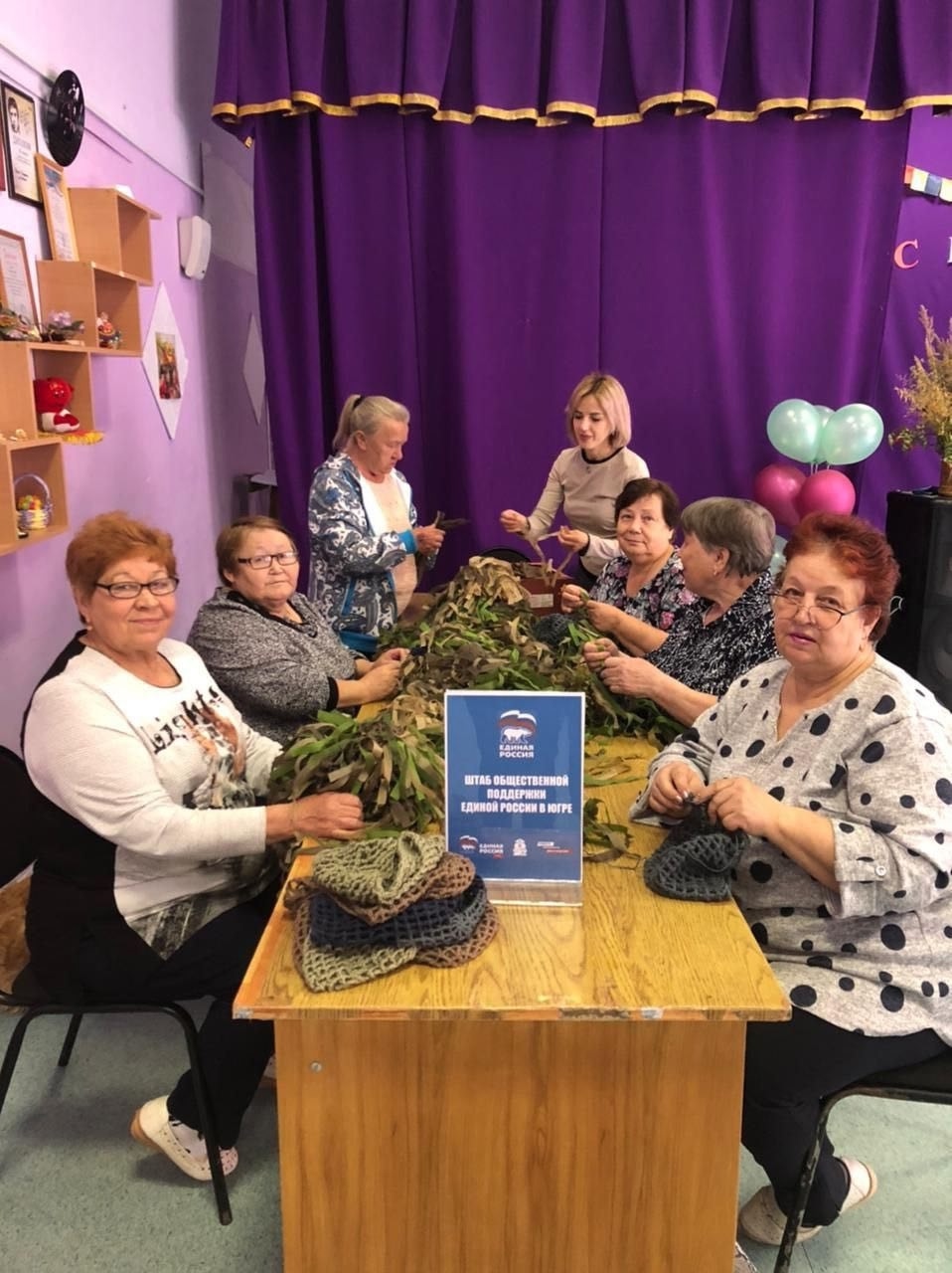 Еженедельно жители деревни собираются за большим столом и, вкладывая душу и пожелания крепкого здоровья и неиссякаемых сил бойцам, плетут маскировочные сети. За 2025 год мастерицы передали в зону СВО 23 изделия, предназначенных для визуальной маскировки объектов.