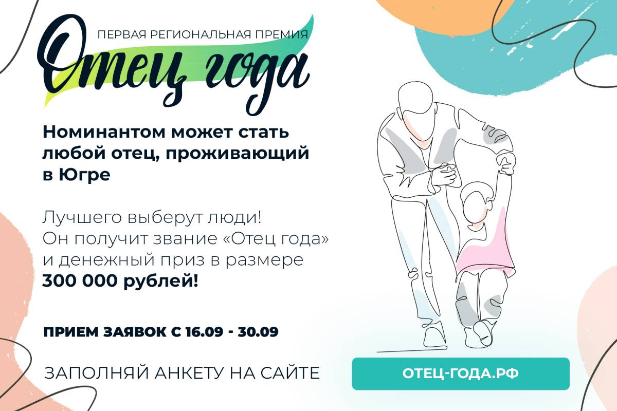 Претендовать на получение премии может любой отец, проживающий в Югре и воспитывающий одного и более детей, в то время как выдвигать номинантов могут все желающие: дети, жены, близкие, друзья, коллеги. Победитель получит звание «Отец года-2022» и 300 тысяч рублей.