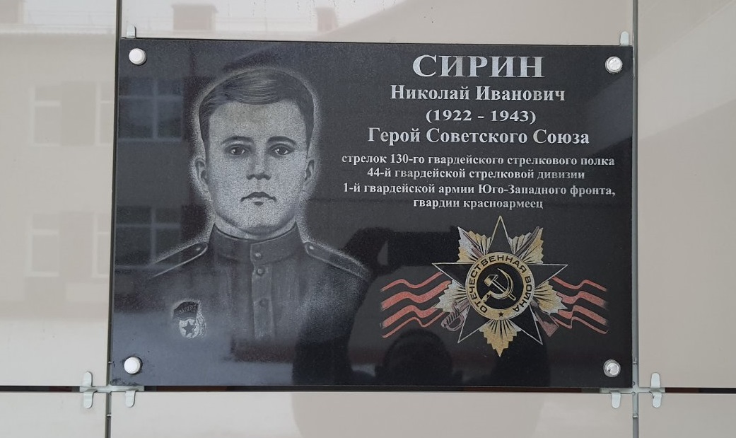 Мемориальная табличка, увековечивающая память о Герое Советского Союза Николае Ивановиче Сирине установлена на фасаде здания школы.