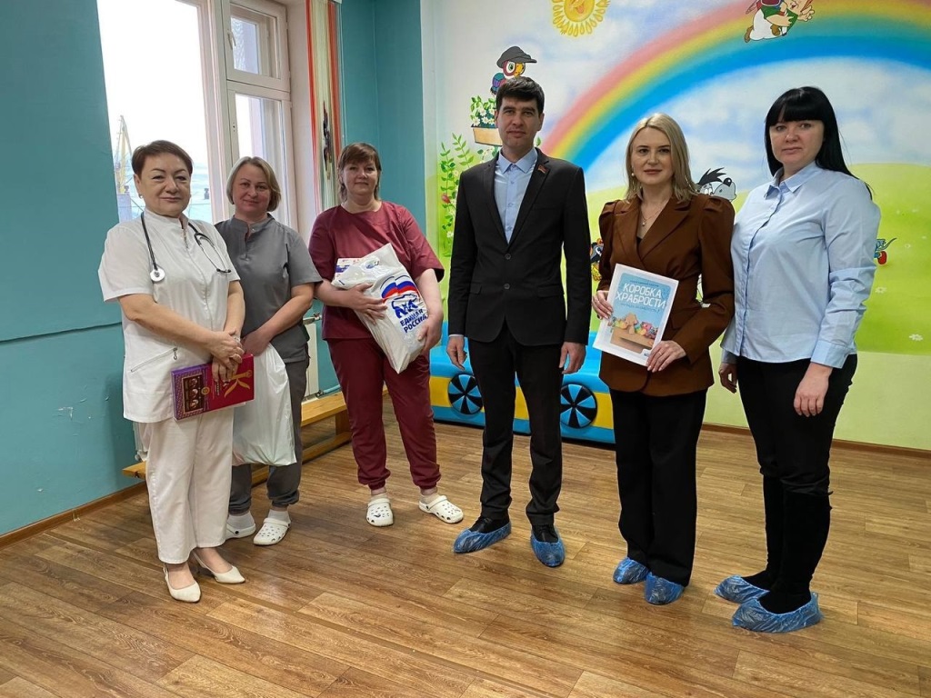 Собранные в ходе благотворительной акции «Коробка храбрости» игрушки, наборы для творчества, конструкторы, пазлы, книжки и раскраски члены партии «Единая Россия» передали медицинским работникам детского отделения участковой больницы и сотрудникам Центра социальной помощи «Лучик».